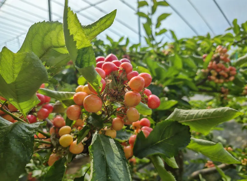 与此同时,在旱地湾李吉财的樱桃棚内,一串串红黄色樱桃圆润饱满、果香四溢。“还有一周,大棚内的樱桃就要成熟上市了。今年的樱桃长势很好,一定能卖个好价钱。”李吉财说道。一颗颗“致富果”、一株株“摇钱树”,正成为群众增收致富、乡村产业振兴的有力支撑。