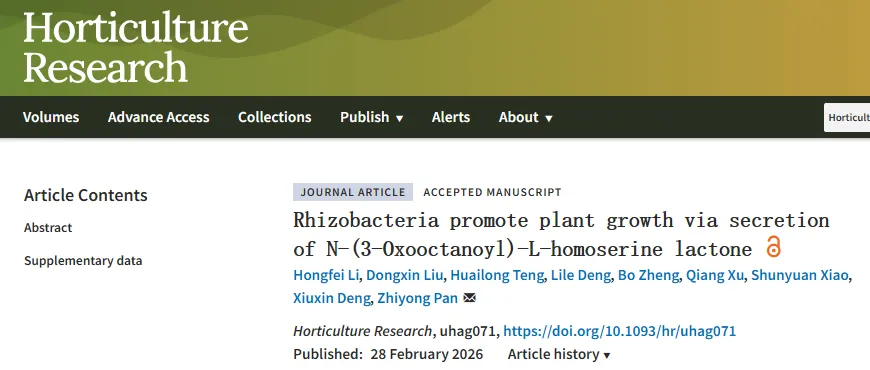 植物根际是一个高度动态的微生态系统,植物通过根系分泌物与微生物进行物质和信息交流,而微生物则通过分泌次级代谢物和信号分子影响植物生理状态。植物促生根际细菌(plant growth-promoting rhizobacteria, PGPR)因其能够提高养分利用效率、增强抗逆性和提升产量而受到广泛关注。在众多化学信号中,N-酰基高丝氨酸内酯(N-acyl homoserine lactones, AHLs)是革兰氏阴性细菌常见的群体感应(quorum sensing)信号分子。然而,这类信号分子是否直接参与植物促生过程,尤其是在柑橘等多年生果树体系中发挥何种作用,仍缺乏明确证据。阐明根际细菌信号分子在植物-微生物互作中的功能,对于开发新型生物刺激剂和生物肥料具有重要意义。