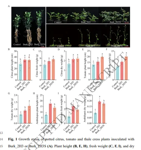 近日,华中农业大学潘志勇教授团队在Horticulture Research发表了题为“Rhizobacteria promote plant growth via secretion of N-(3-Oxooctanoyl)-L-homoserine lactone”的研究论文。研究表明,一株从柑橘根际分离获得的优势促生菌株Burkholderia Burk_2H3通过分泌N-(3-oxo-octanoyl)-L-homoserine lactone(PGPHL)显著促进植物生长,并通过调控养分转运相关基因增强根系养分吸收能力。
