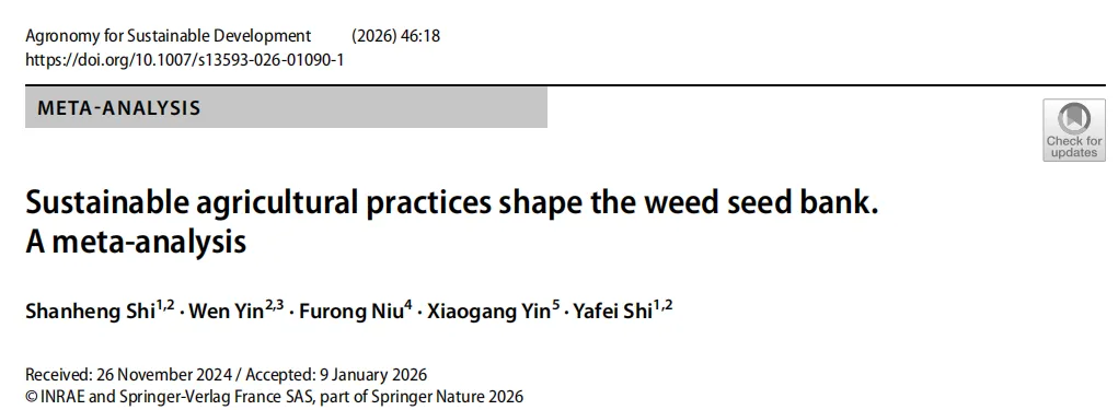 本研究通过整合全球数据分析了可持续农业措施对杂草种子库的影响,尤其为少耕系统的杂草管理提供了理论参考。