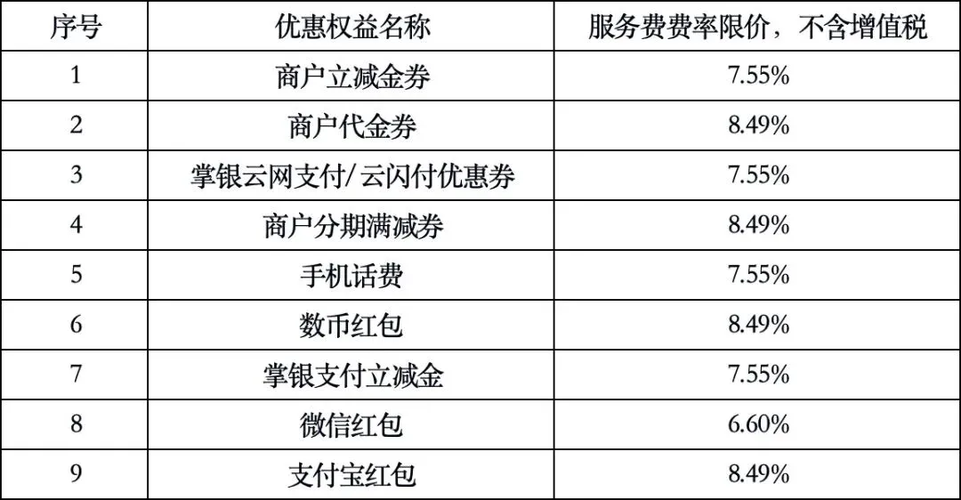 1.采购内容:为我行线上线下客户赠礼、支付优惠等提供营销优惠活动权益供应服务。所需的具体优惠权益类别为:商户立减金券、商户代金券、掌银云网支付/云闪付优惠券、商户分期满减券、手机话费、数币红包、掌银支付立减金、微信红包和支付宝红包9类等,服务费预估金额2783.02万元(不含增值税)。