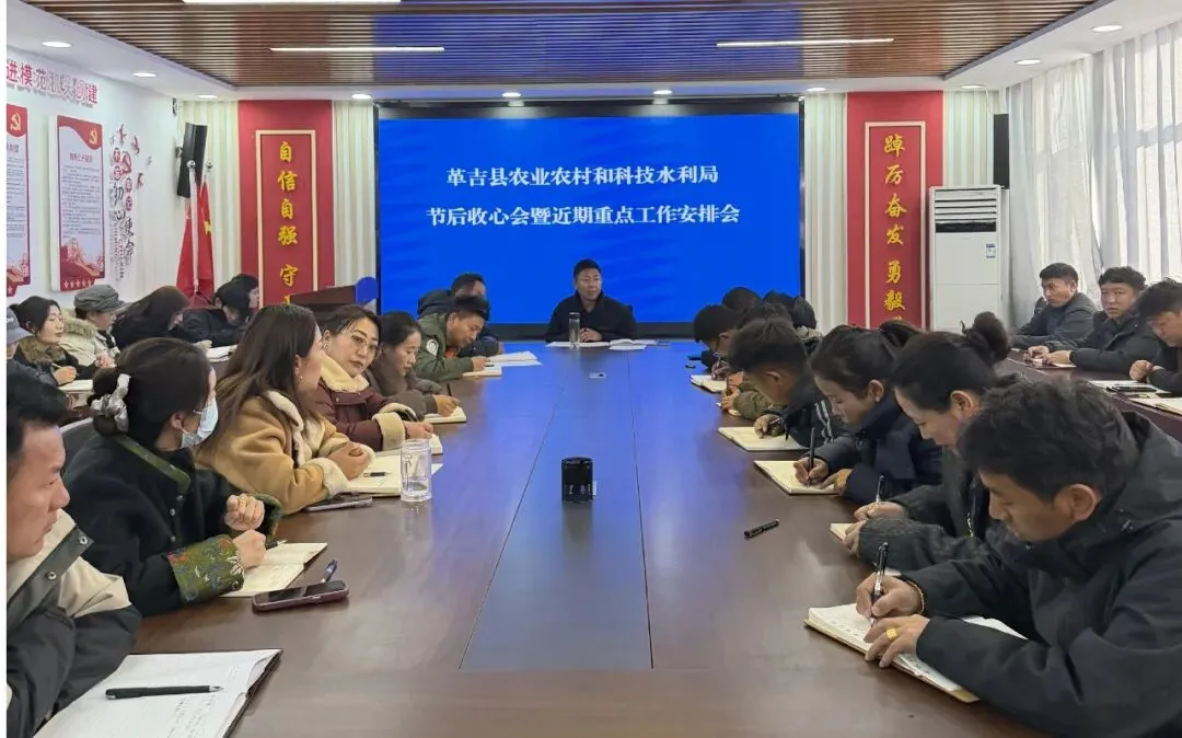 2月27日上午,革吉县农业农村和科技水利局组织全体干部职工,召开节后收心会暨近期重点工作安排会,会议听取各分工科室下一阶段工作计划。