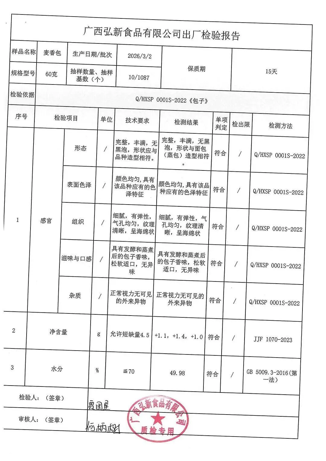 >金浦供应链&禾美农业-03月03日包子、面包、面粉、淀粉、牛奶检测报告