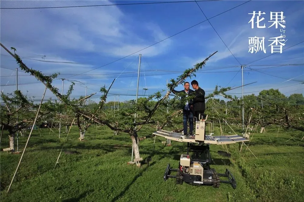 “你呢?你有兴趣吗?”我转身问黄伟。这个做平棚架的桃园是他提议去看的,他去年6月来过这个园子,第一次看到桃树竟然可以做成葡萄般的平面结果,从他拍的小视频中可以看出平棚架下的桃子大小很均匀。他把这个视频传给国家桃产业技术体系首席科学家姜全,姜全回了两个字:费工。