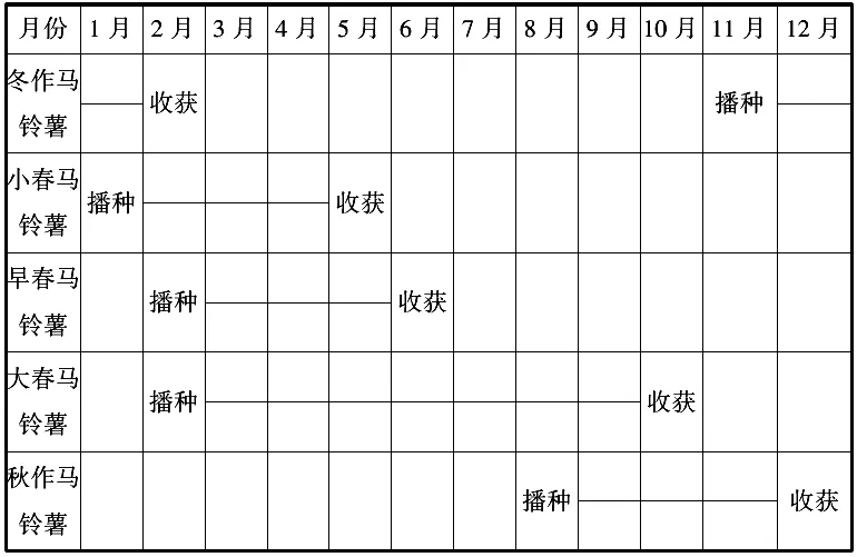 1. 马铃薯是喜冷凉的作物。随着人民生活水平的提高,市场对新鲜马铃薯的需求越来越大。西南地区马铃薯生产最大的特点是全年生产、全年供应。读西南地区马铃薯周年生产表,完成1~3题。