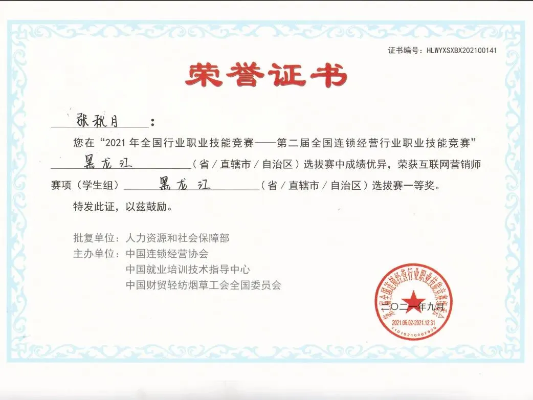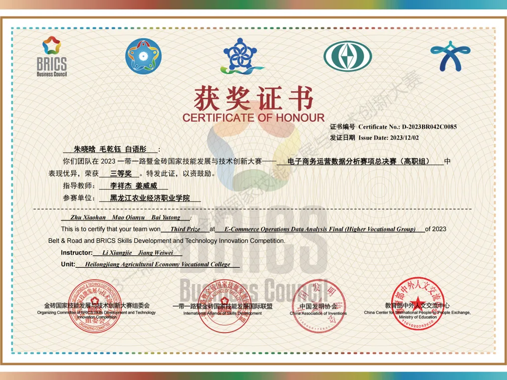 电子商务为中国特色高水平专业群重点建设专业,与马来西亚马六甲技术大学共建“开物工坊”,创办海外电子商务专业。与阿里巴巴、京东、抖音共建教育部供需对接就业育人实训基地,建有“阿里农村电商学院“,入选黑龙江省职业教育示范现代产业学院项目。