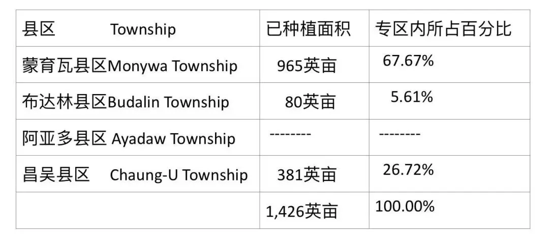 目前蒙育瓦专区内的各县区完成的这黄油豆种植面积如下表: