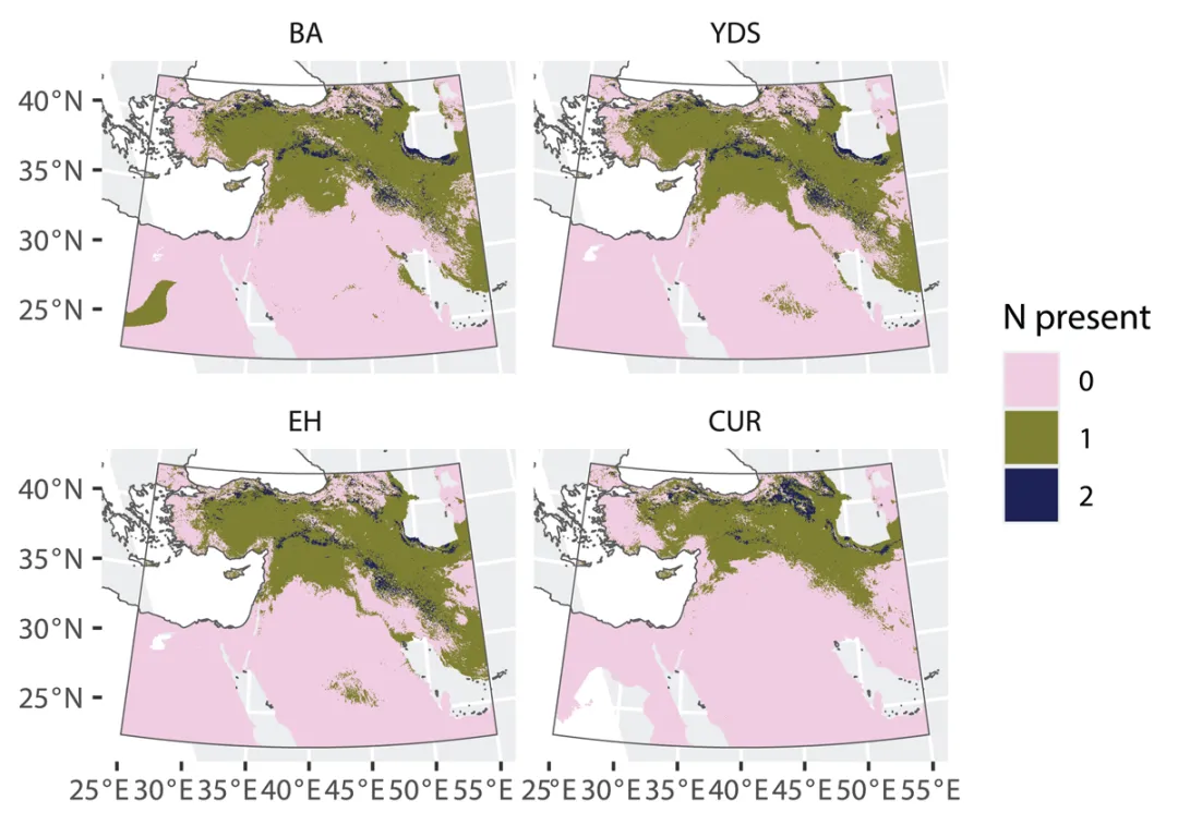 利用先进的机器学习和气候模型,研究人员表明,小麦、大麦和黑麦等作物的祖先在12000年前中东地区的分布范围可能远比此前认为的要小。这对早期植物驯化和农业地理的传统假设提出了挑战。