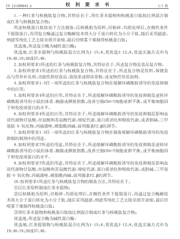 湖南农业大学:红茶核桃肽复合物制备及对环磷酰胺诱导免疫抑制的缓解应用