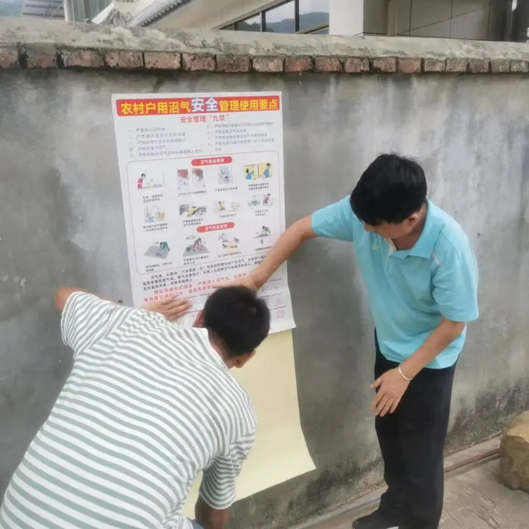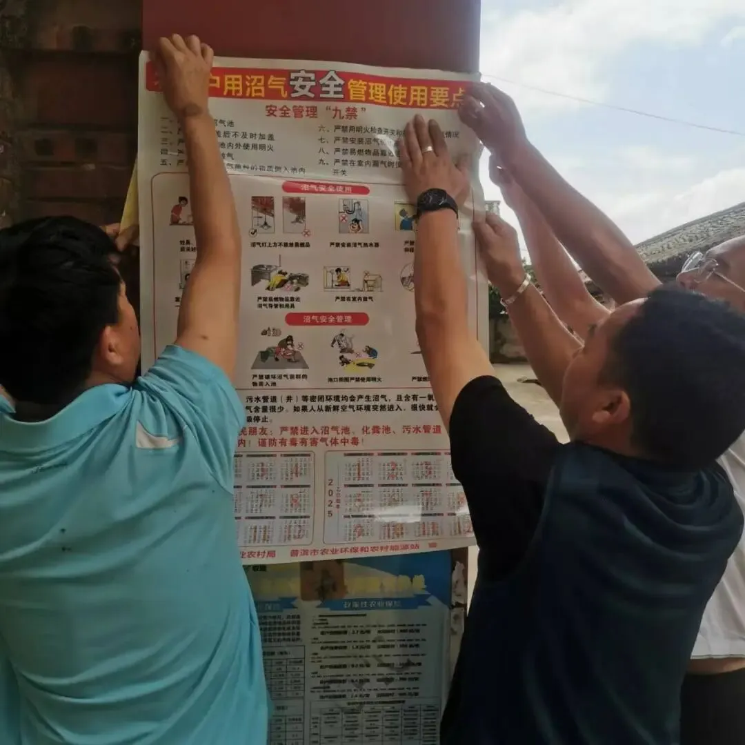 景东县农业环保和农村能源站工作人员开展农村户用沼气安全检查,通过粘贴宣传图册、喷绘警示标志等方式开展安全宣传。