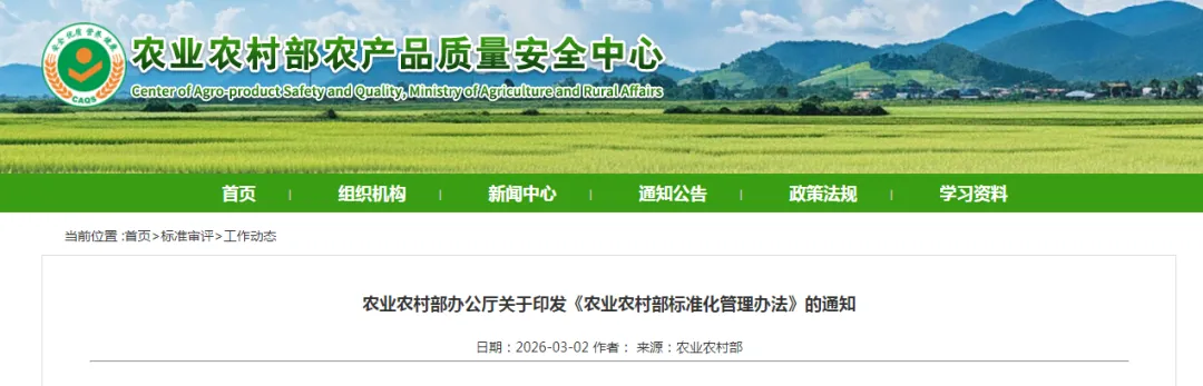 农业农村部标准化管理办法