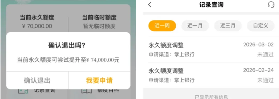 2、使用了临时额度:农行和建行是不喜欢使用临时额度的,直接影响提固定额度的周期。
