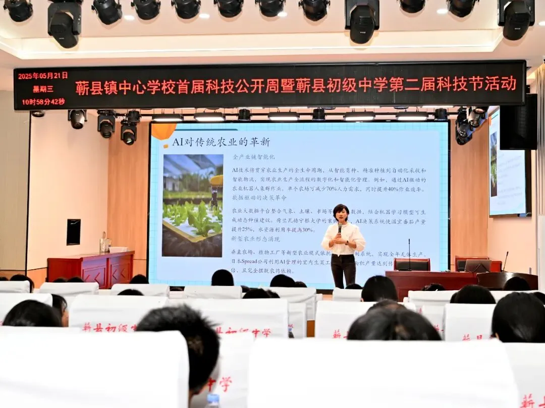 安徽农业大学博士后高琪娟给七年级学生带来了《智能时代的一杯茶:当农业遇见AI》主题讲座。高琪娟聚焦激发青少年尤其是女生的科学兴趣,以茶为引,结合茶树种植创新与资源利用国家重点实验室的前沿研究,从茶树生长特性切入,深入讲解种植技术的迭代升级。在分享环节,她着重展示人工智能在茶树基因分析、病虫害预警、产量预测等领域的创新应用,揭秘AI如何重塑传统农业格局。高琪娟以生活实例为依托,阐释科技如何改变农业生产与日常消费,鼓励同学们在科学探索中勇追梦想。