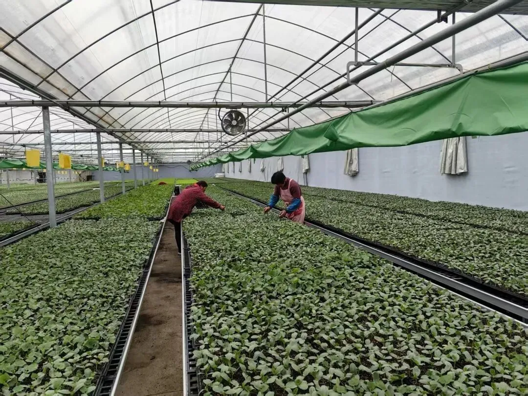 在位于绍兴滨海新区的浙江顺浩农业开发有限公司,现代化智能育苗棚内暖意融融,工作人员正将培育好的种苗装盒、打包、贴标,现场忙碌而有序。一排排育苗床上,番茄、茄子、西瓜、花菜等10余种果蔬苗长势喜人;棚内的自动喷淋系统匀速移动,细密水雾均匀洒在幼苗上,滋润着每一株幼苗生长。“这套智能灌溉系统比人工灌溉节水肥30%以上,还能有效预防叶面病害,加上配套的环境监测与智能调控系统,能实时调节棚内温湿度,使秧苗始终保持最佳生长状态,出苗率稳定在90%左右。”负责人马国祥向记者介绍,春季1月至4月是育苗高峰期,目前基地已接到6000万株种苗订单,正陆续发货,平均每天有9万—14万株种苗发出,不仅供应周边农户,还远销宁波、台州等地。