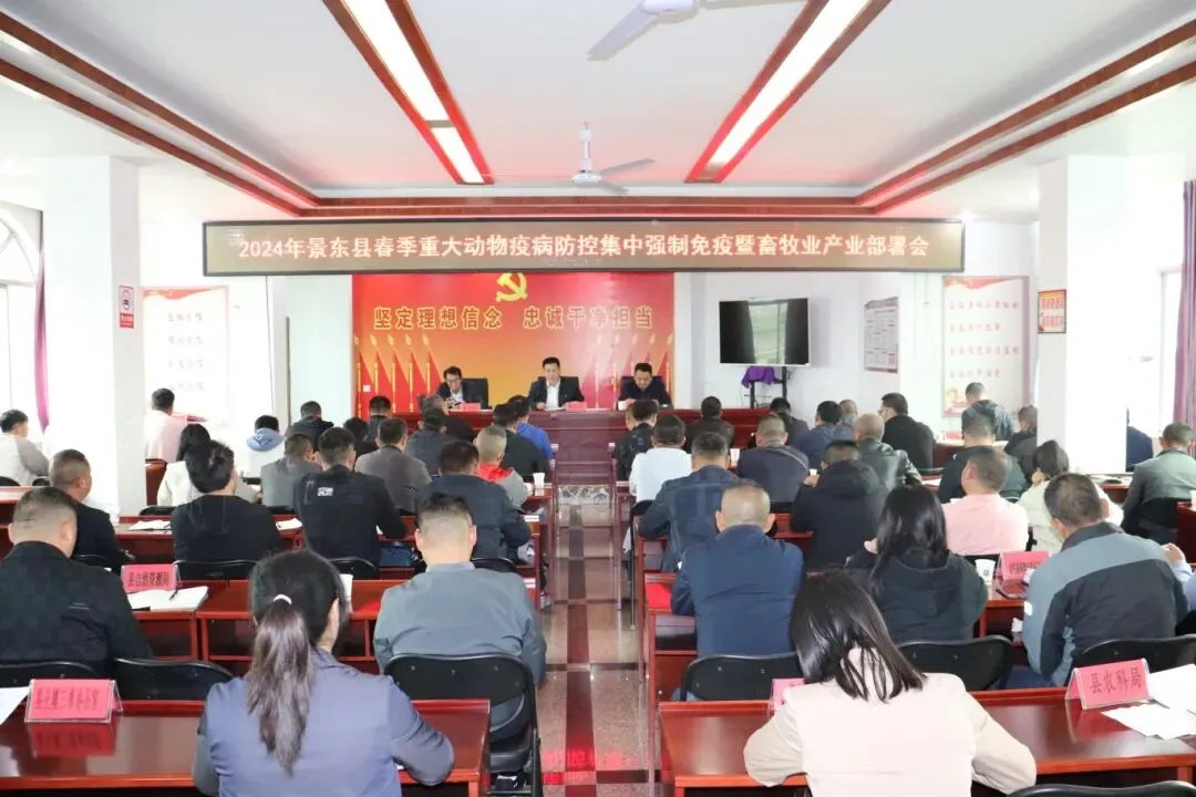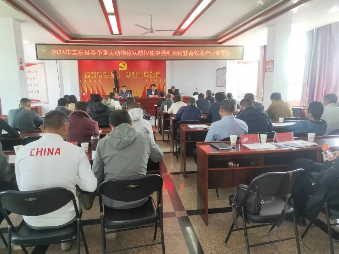 为确保春节重大动物疫病防控工作顺利开展,保障全县畜牧业安全、健康发展,3月20日至21日,景东县召开2024年春季重大动物疫病集中强制免疫暨畜牧业生产工作会议。会议由县农科局党组书记、局长魏启勇主持,县人民政府副县长李成状出席会议并讲话。各乡(镇)农业分管负责同志、农业综合服务中心主任、分管畜牧副主任和系统管理员,县农科局畜牧兽医股、畜牧站、动物卫生监督所、动物疫病防控中心等人员参加会议。