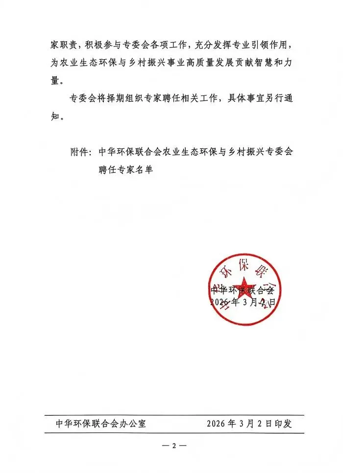 关于农业生态环保与乡村振兴专委会专家聘任名单公示结果及聘任的通知