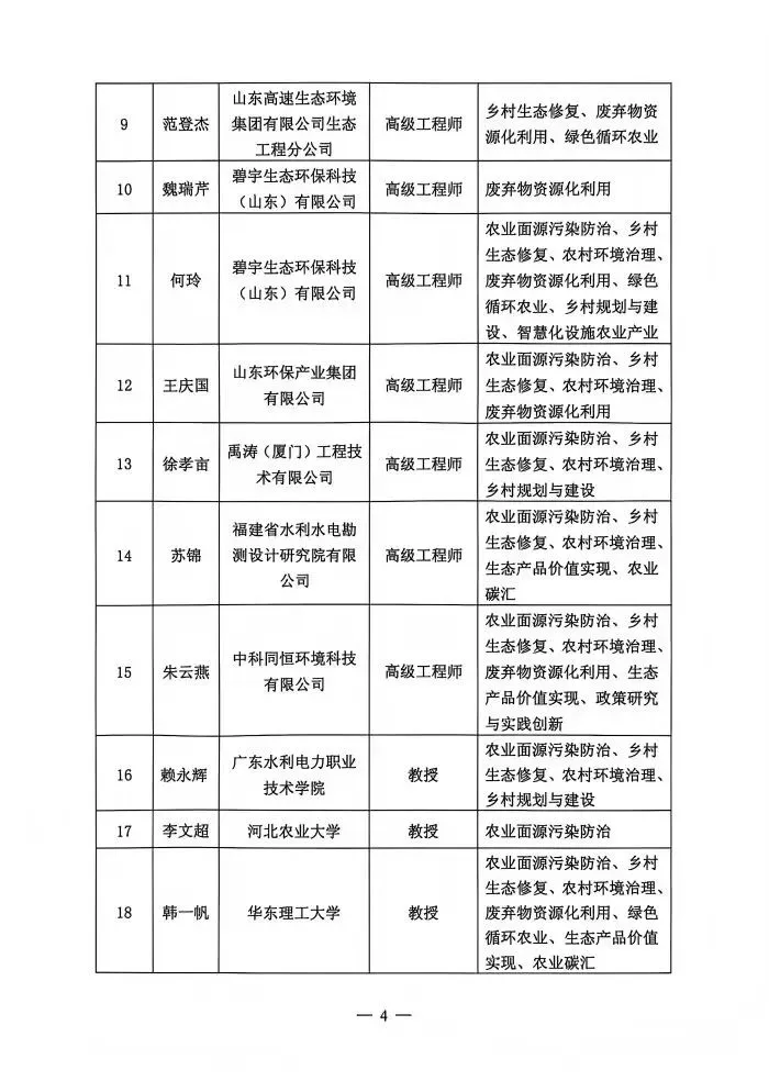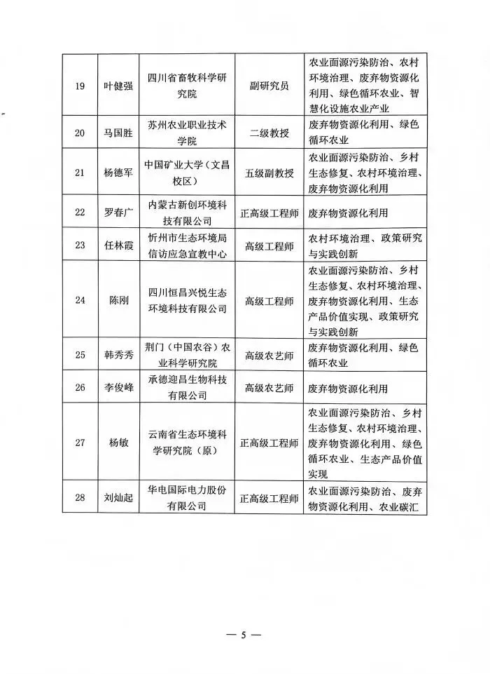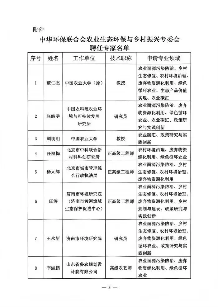 >关于农业生态环保与乡村振兴专委会专家聘任名单公示结果及聘任的通知