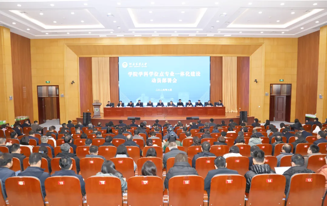 为深入学习贯彻党的二十届四中全会精神、省委十一届十次全会精神,认真落实党中央关于树立和践行正确政绩观要求,聚焦“双一流”创建等重大战略和学科冲A、学位点申报等重点工作,吹响新年冲锋号,树起发力风向标,确保“十五五”各项工作开好局、起好步,3月2日新学期第一天,学校在龙子湖校区召开“新春第一会”——学院学科学位点专业一体化建设动员部署会。校党委书记岳杰勇出席会议并讲话,校长周卫院士主持会议。全体在校校领导,老领导和院士专家代表出席会议;全体中层干部、教授代表,各学院科研秘书、教学秘书、学科秘书、系主任,相关部门科级干部参加会议。