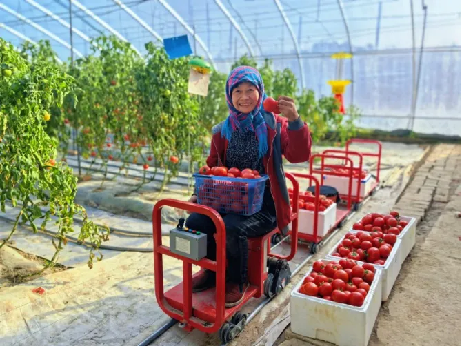 市农业技术推广中心引进的东西行种植宜机化新模式+智能轨道运输车+“三改三变三提升”九项技术集成应用试验示范大获成功! 种植户坐着小车摘西红柿,成本减半,效率翻倍。现在园区正在开放采摘!高品质口感番茄“原味三号”红彤彤的果实挂满枝头,新鲜又多汁,不仅能品尝“小时候的味道”,还能亲自体验驾驶智能轨道小火车,感受科技种田的快乐!地址:敦煌市转渠口镇盐茶村农耕文化园区(鲜蔬庄园)温室大棚文章来源:敦煌市农业技术推广中心