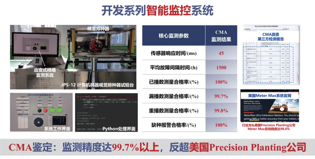 通过攻克高速控种、种床构建、智能监测等核心技术,实现了玉米精播机的自主化、高性能化,填补了国内超大宽幅、电驱高速玉米精播机领域的空白。