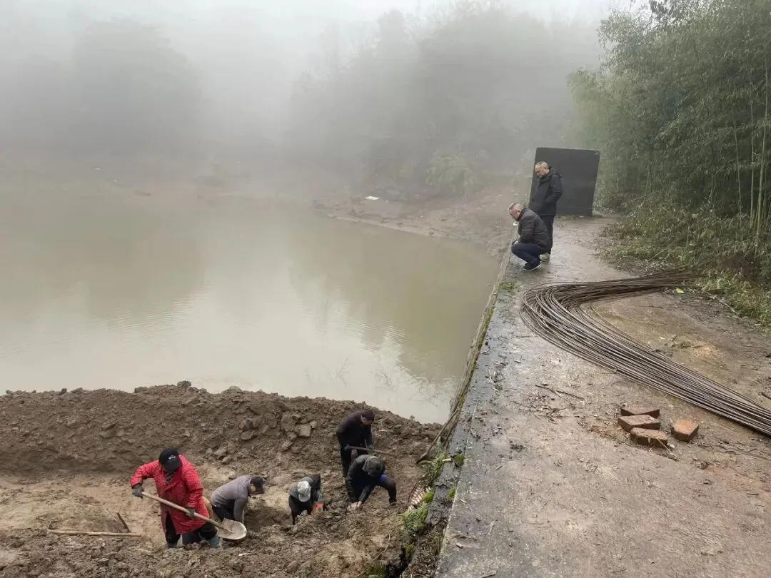在腰带寺水库,重点对坝体防渗加固、溢洪道疏通、输水涵管检修等核心环节开展施工,利用混凝土浇筑与黏土夯实全面消除安全隐患;针对石坪片区的堵塞堰沟,开展清淤疏浚、砌护加固、硬化改造,新建混凝土灌溉渠,彻底打通输水通道。施工过程中,村干部深入一线协调物资、监管质量与安全,技术人员严格把控工艺与验收,确保工程经得起检验。