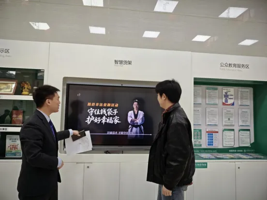 农行荆公支行依托赣金防非服务站认真开展“养老防非金融行”新春宣教活动。春节期间,网点客流显著增加,正是金融宣教的关键窗口期。农行荆公支行立足赣金防非服务站职能定位,以赣金防非服务站为阵地,扎实开展“养老防非金融行”主题宣传教育活动,将防范非法金融活动宣传融入厅堂服务、员工管理与线上传播,切实守护群众“钱袋子”,获得客户一致好评。