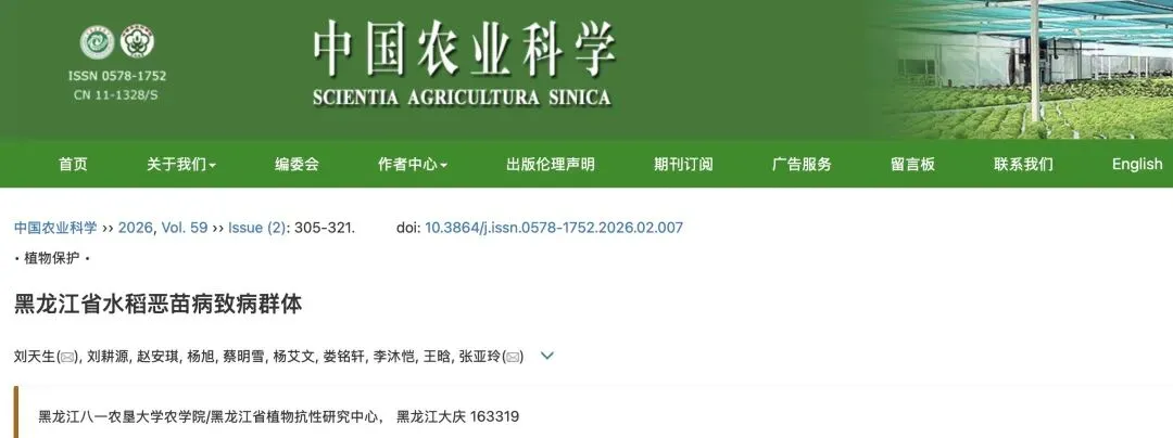 刘天生, 刘耕源, 赵安琪, 杨旭, 蔡明雪, 杨艾文, 娄铭轩, 李沐恺, 王晗, 张亚玲. 黑龙江省水稻恶苗病致病群体[J]. 中国农业科学, 2026, 59(2): 305-321.