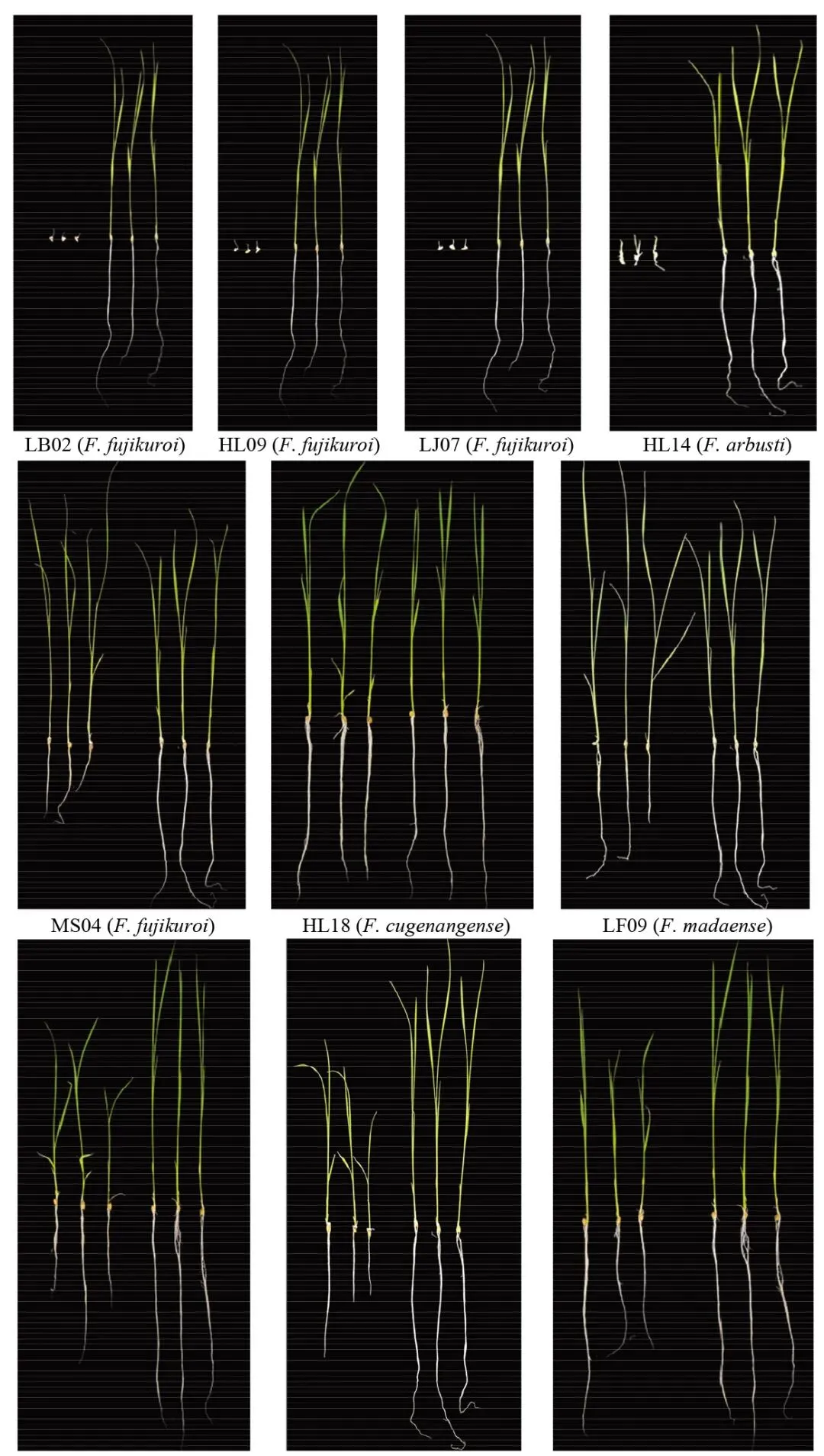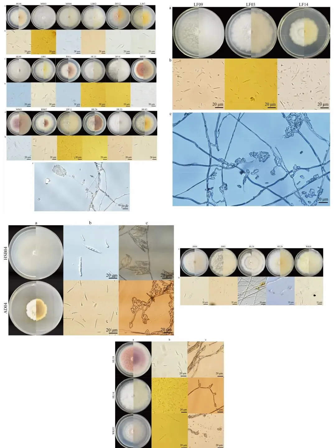 该研究于2023年,采集黑龙江省8市15县(区)水稻恶苗病样品,经组织分离法和稀释涂布法,共分离纯化172株单孢菌株。通过形态学鉴定,结合多基因联合系统发育分析(ITS、RPB2、TEF1-α、LSU、TUB2)及柯赫氏法则验证完成水稻恶苗病病原菌鉴定。