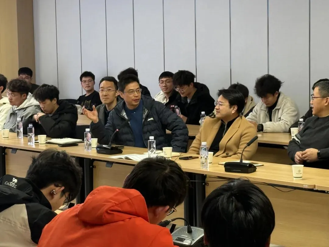 针对同学们提出的“理论与实践的落差、技术落地困难”等问题,唐铁军建议学生积极加入科研团队、寻求导师指导,以项目驱动学习,缩小课堂与现实的差距。李大鹏在交流中进一步阐释了创新班的培养理念,强调将以人工智能为基础,实行多导师协同指导,注重项目与场景结合,通过项目式学习推动复合型人才培养。他以自身经历勉励学生:“要培养科研思维,摒弃形式主义,勇于探索和实践。”