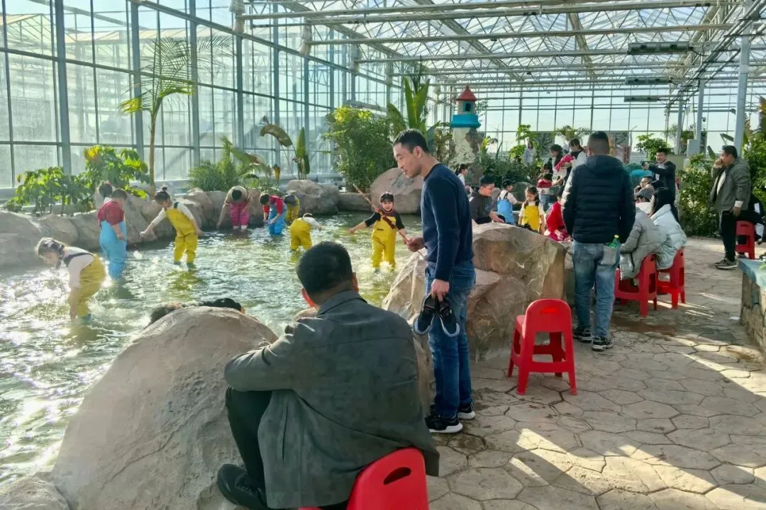 无土栽培立体农业展示区里,蔬菜“住”上多层“楼房”,小空间实现大产出,让游客直观感受现代农业高效集约;鱼菜共生系统实现种养循环、零污染零施肥,生态智慧模式令人惊叹;热带风情主题馆内,各类南方植物繁茂生长,让人在“家门口”就能邂逅 “热带雨林”,成为冬日里的网红打卡点。