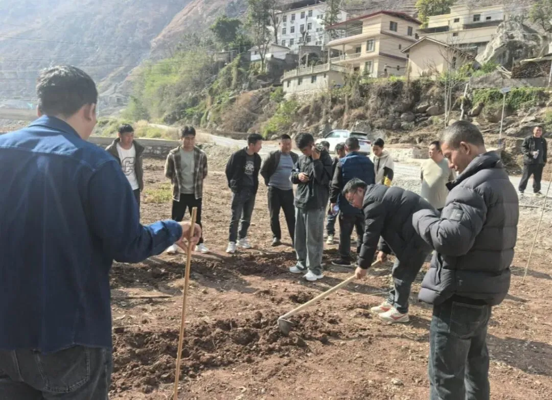 在田间现场示范环节,县农业农村局专业技术人员与农技人员一道深入示范地块,围绕整地起垄、拉线定距、规范播种、施肥覆土、田间管理等关键环节开展手把手实操演示,现场指导农户掌握行株距标准、播种深度、密度控制等操作要领,纠正传统不规范种植习惯,让参训人员直观学习、现场掌握标准化种植流程,确保技术学得会、用得上、见实效。