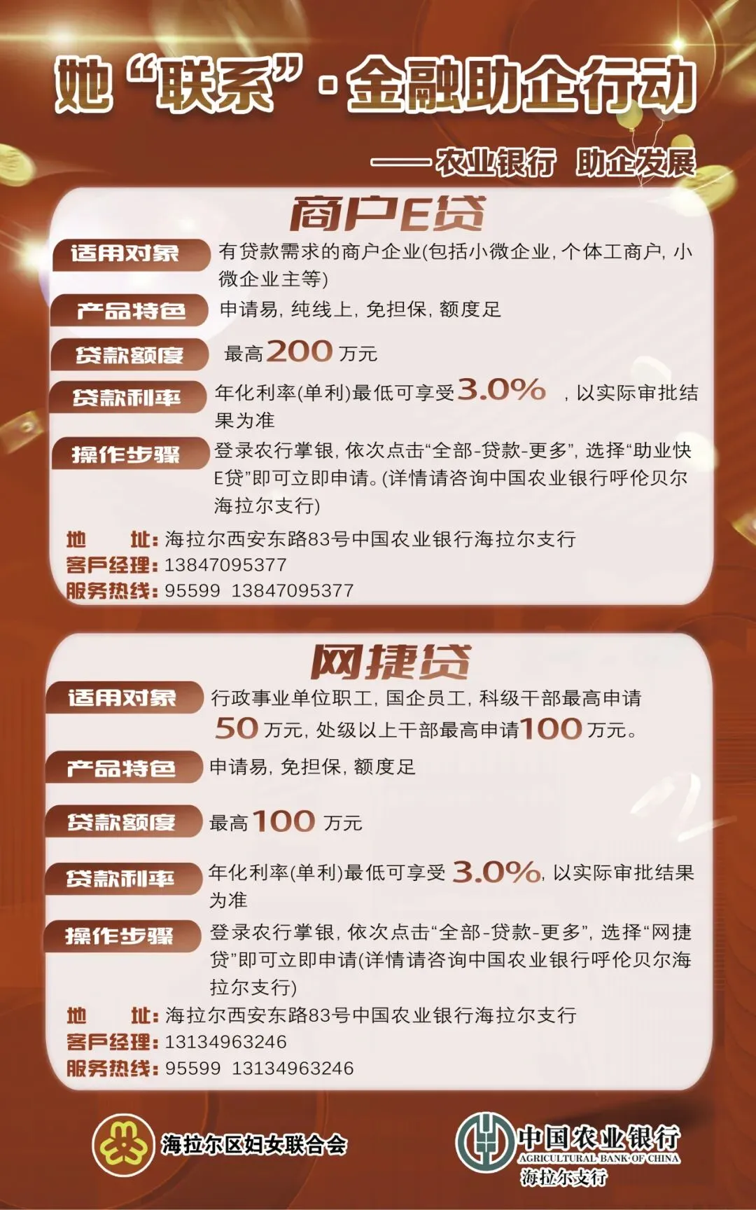 此次行动精准聚焦女性创业者、个体工商户及行政事业单位女职工的实际需求,量身推出“商户e贷”与“网捷贷”两款低息普惠金融产品。一份份“真金白银”的诚意,化作破解融资难题的钥匙,以金融活水浇灌巾帼梦想,为海拉尔区高质量发展注入源源不断的“她”动能。