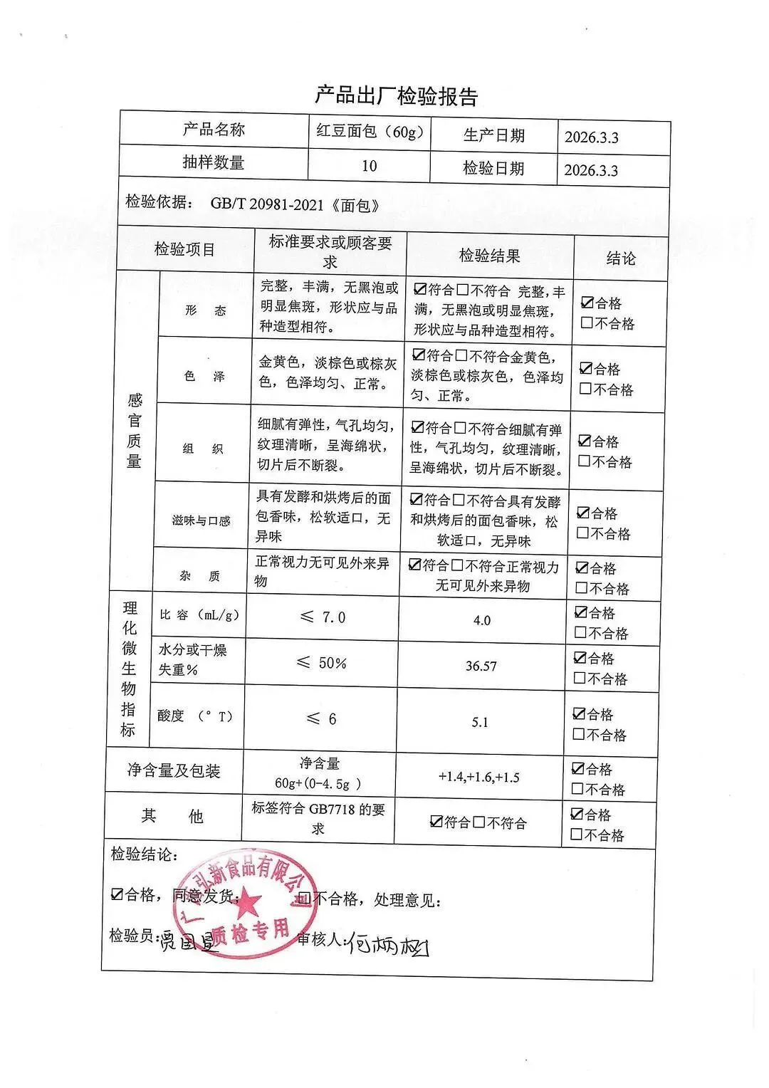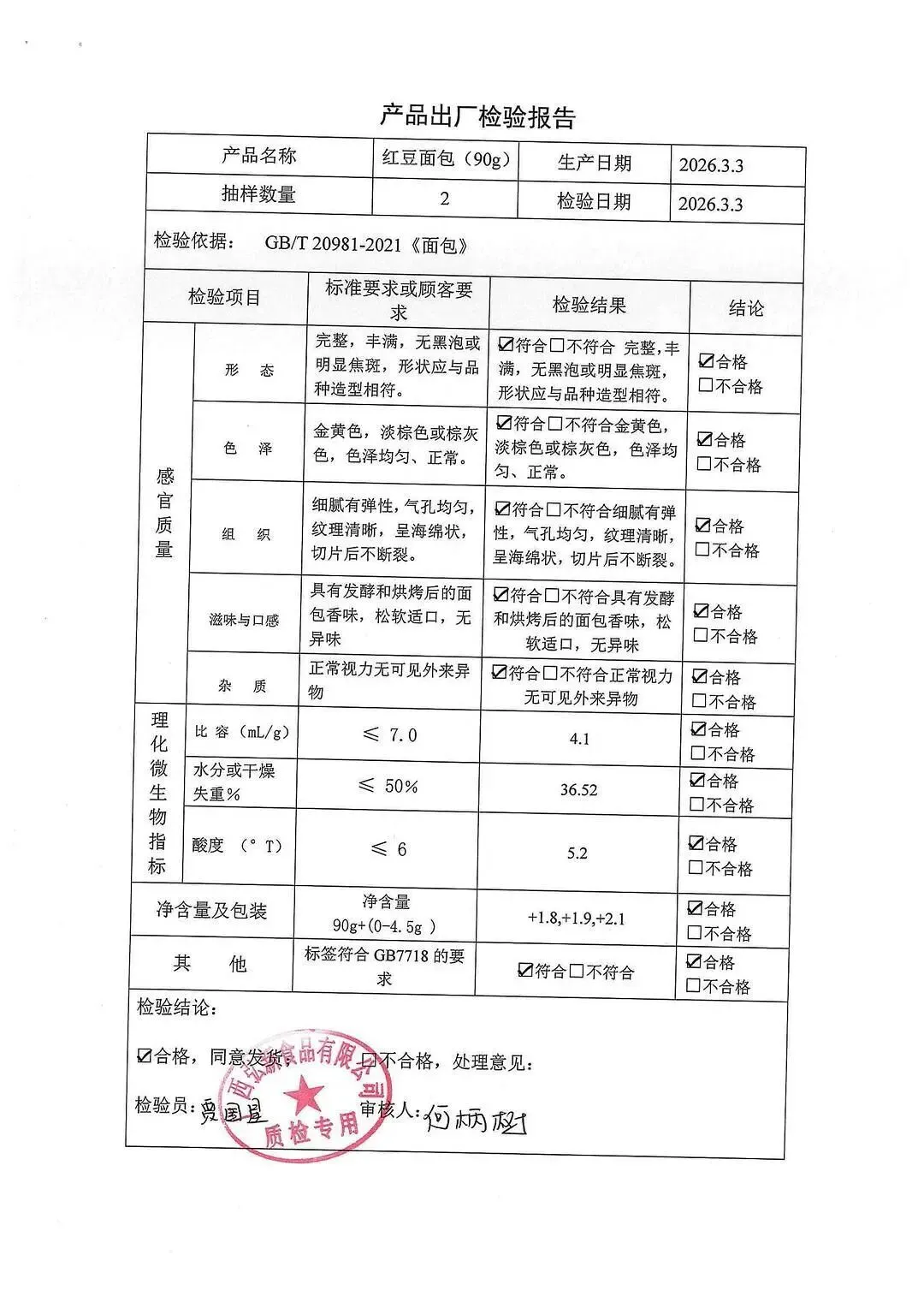 包子、面包、面粉、淀粉、牛奶检测报告