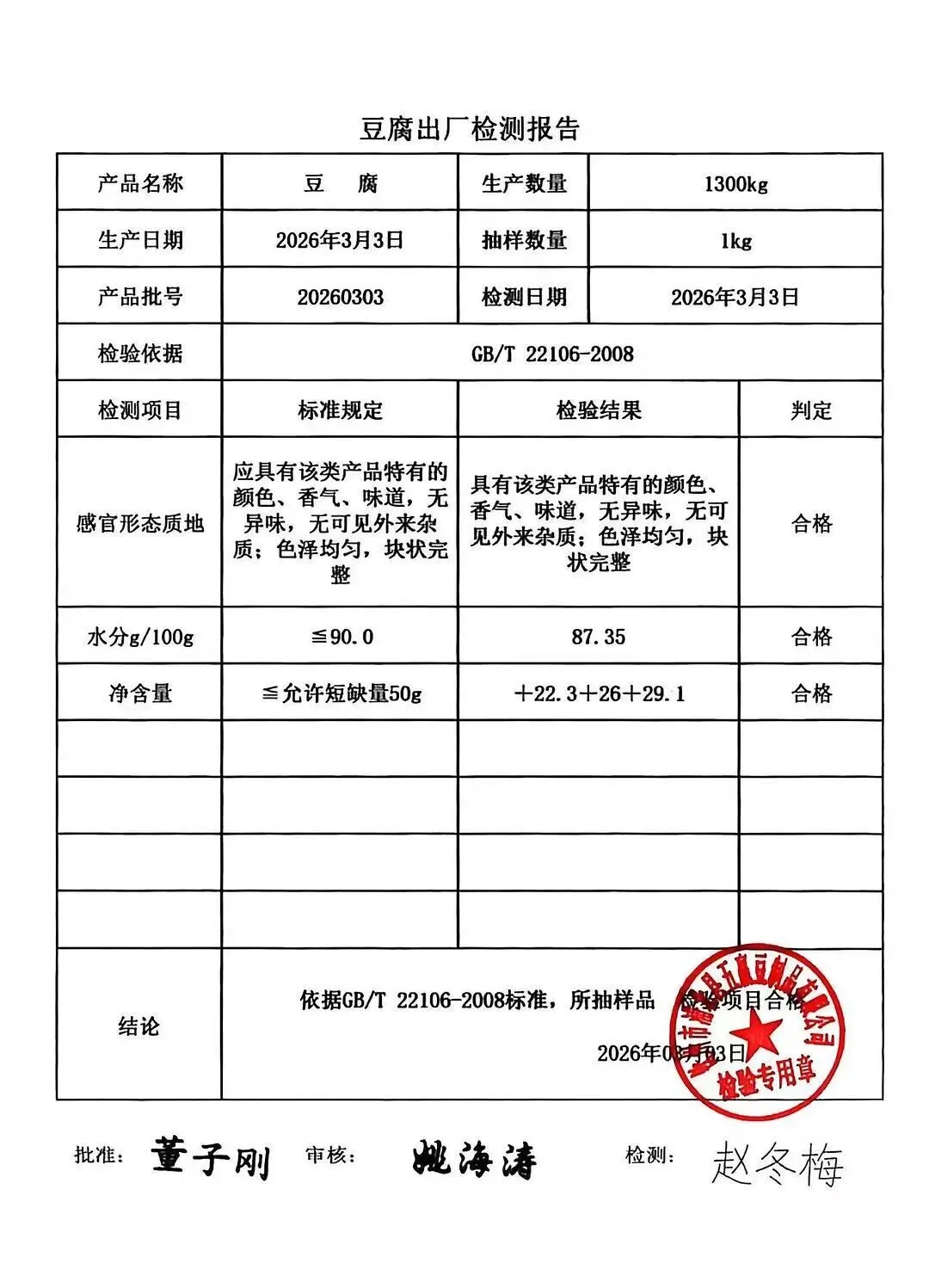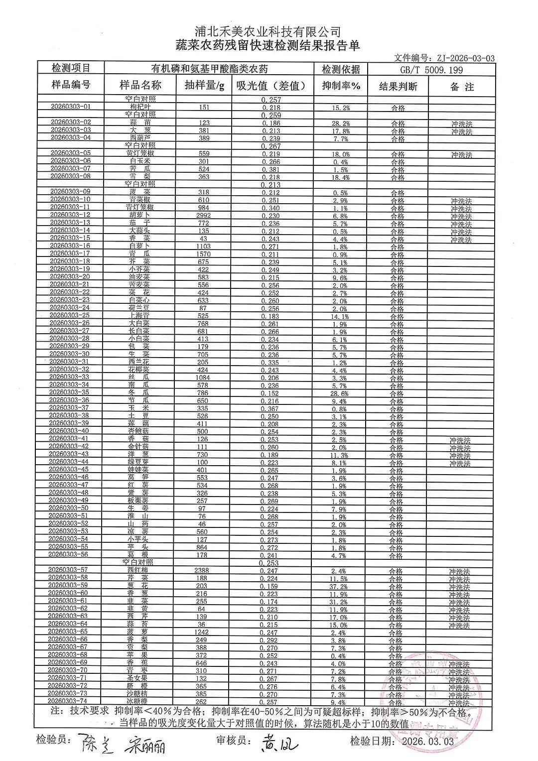 金浦供应链&禾美农业-03月04日蛋类、酱腌菜、肉类、蔬菜、水豆腐、鲜湿淀粉条检测 报告