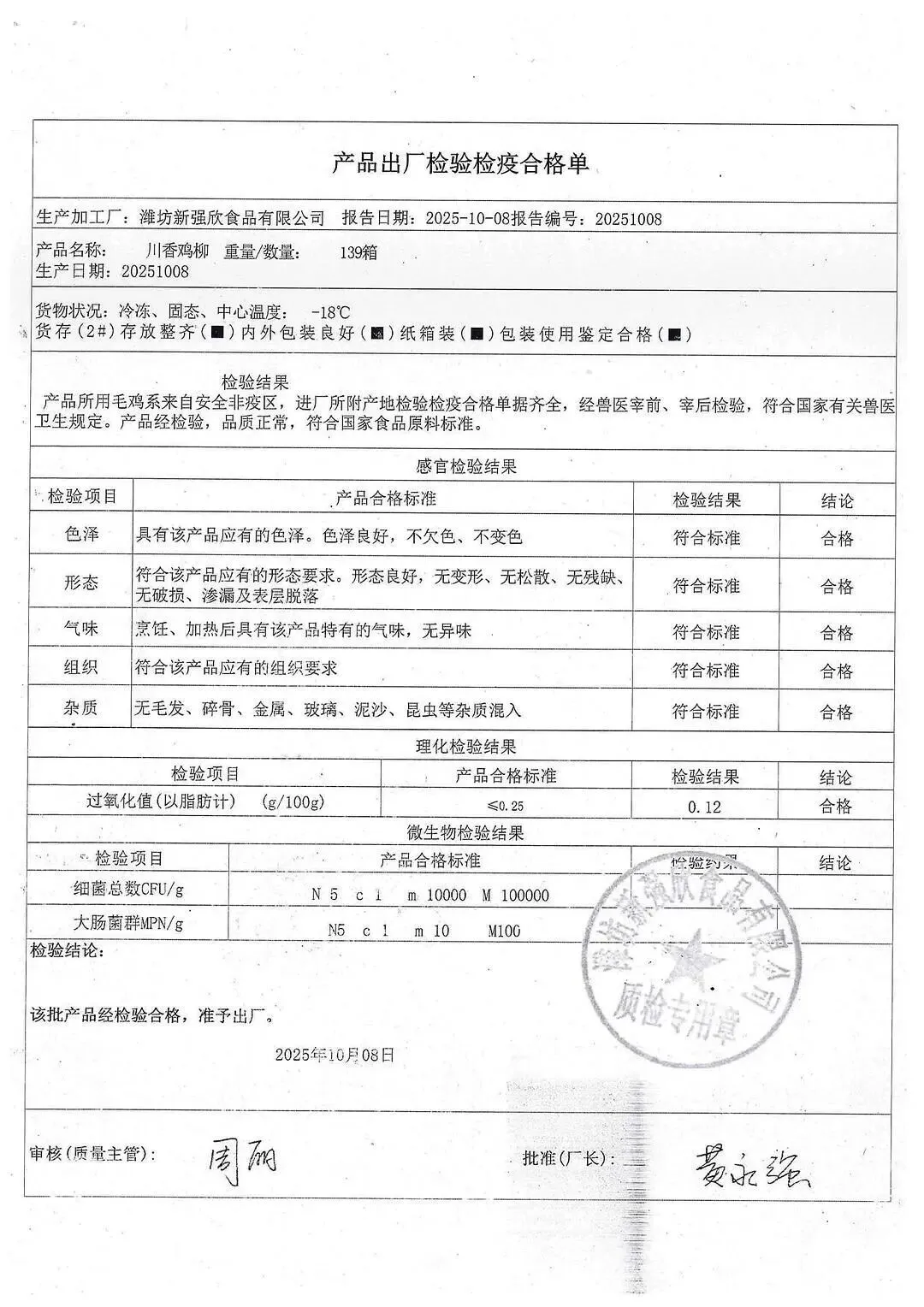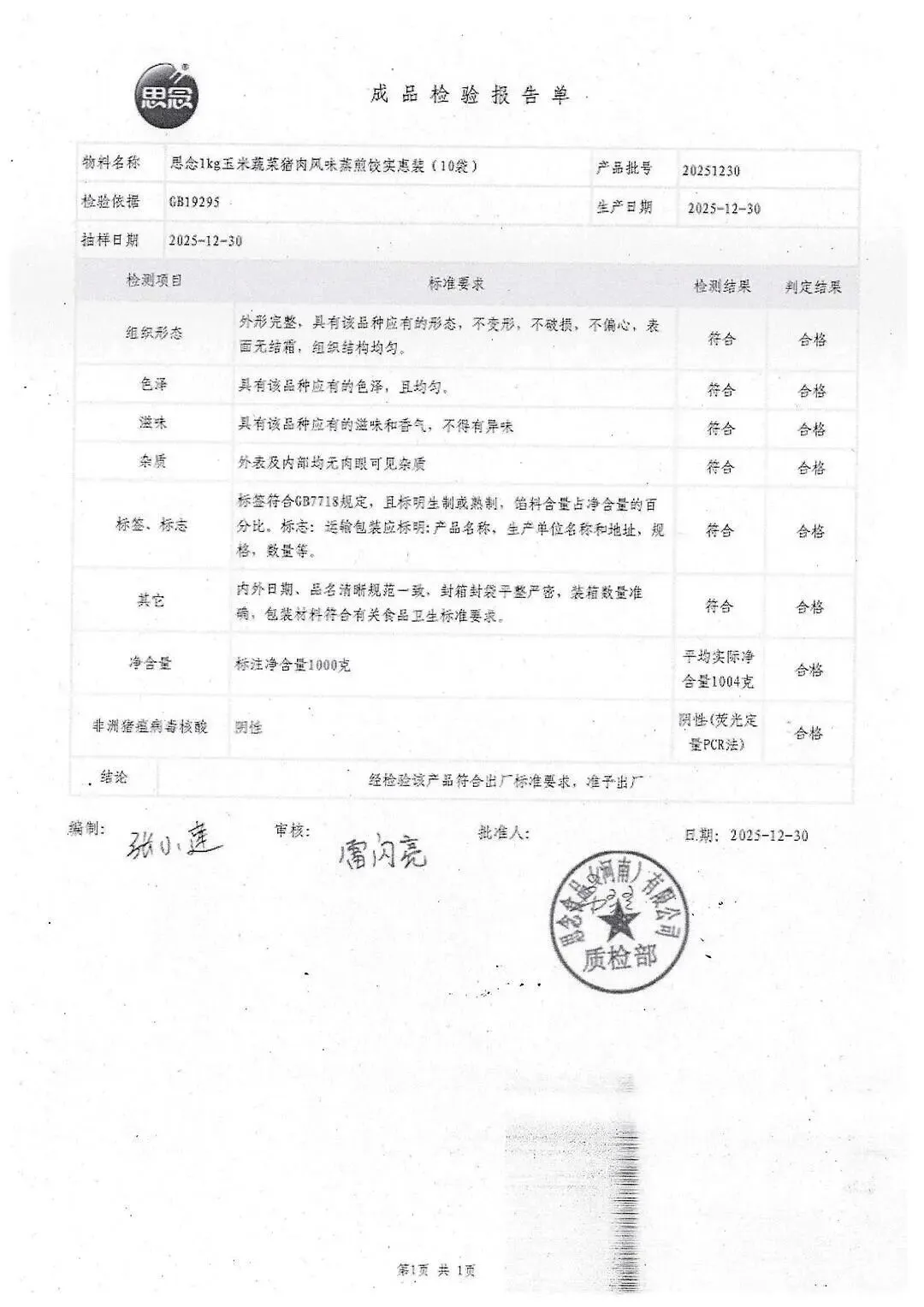 >金浦供应链&禾美农业-03月04日冻品、水饺、丸子、热狗、腊肠检测报告