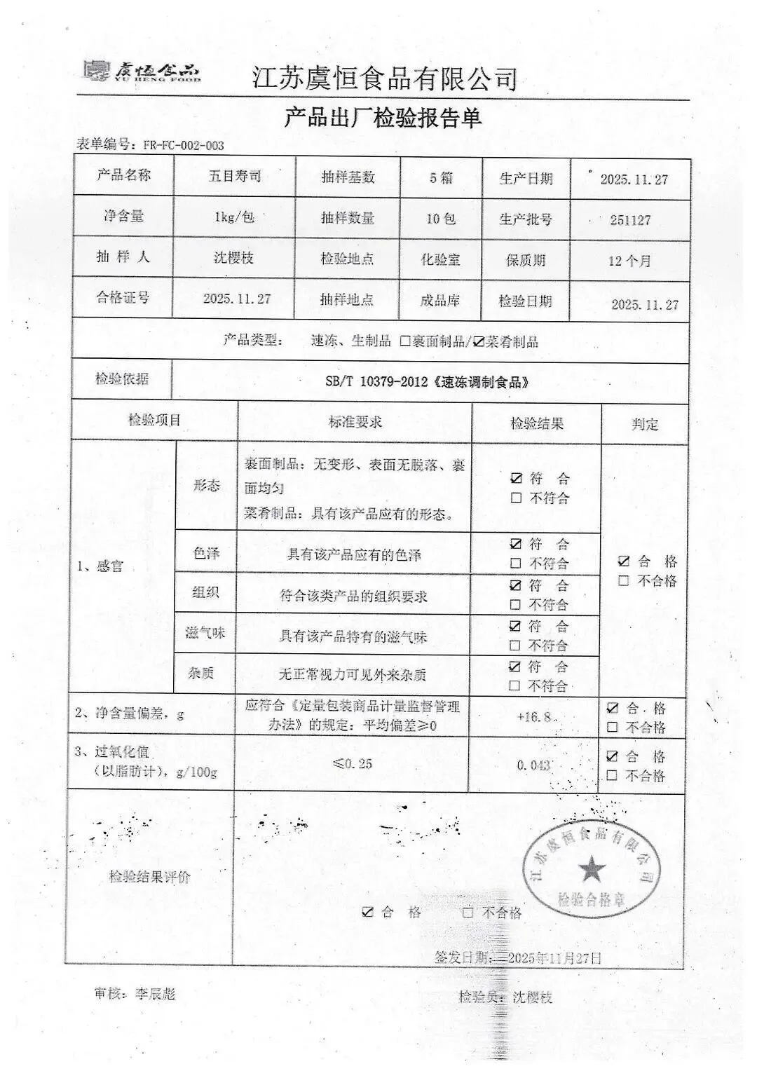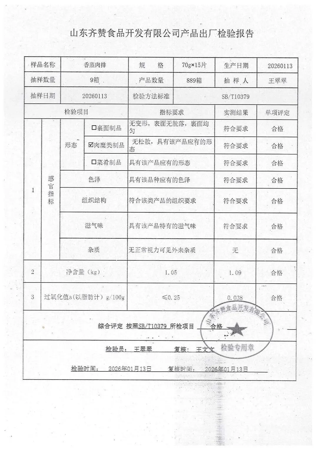 冻品、水饺、丸子、热狗、腊肠检测报告