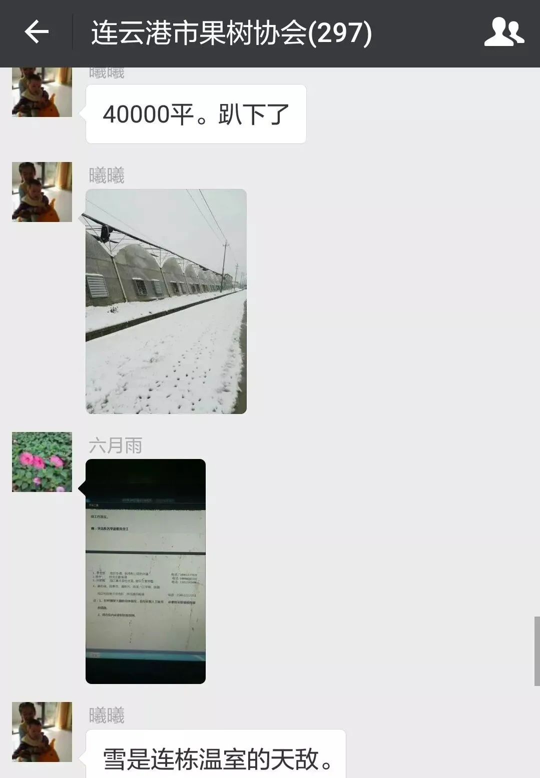 连云港果树协会提到有40000平大棚全垮掉,特别是连栋温室最怕雪!