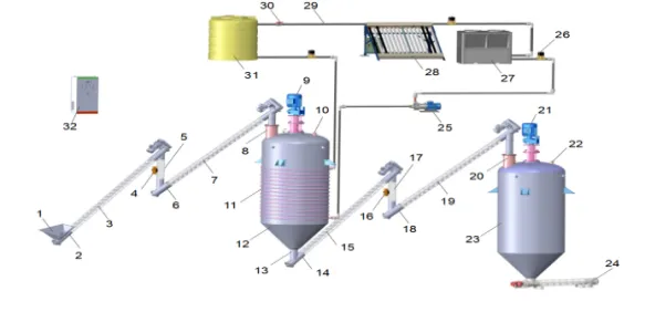 3. 以连续式恒温干法厌氧—高温好氧发酵为核心的气肥联产装备系统(发明专利:一种连续式干法厌氧—好氧双级耦合发酵系统,ZL202010403633.2)
