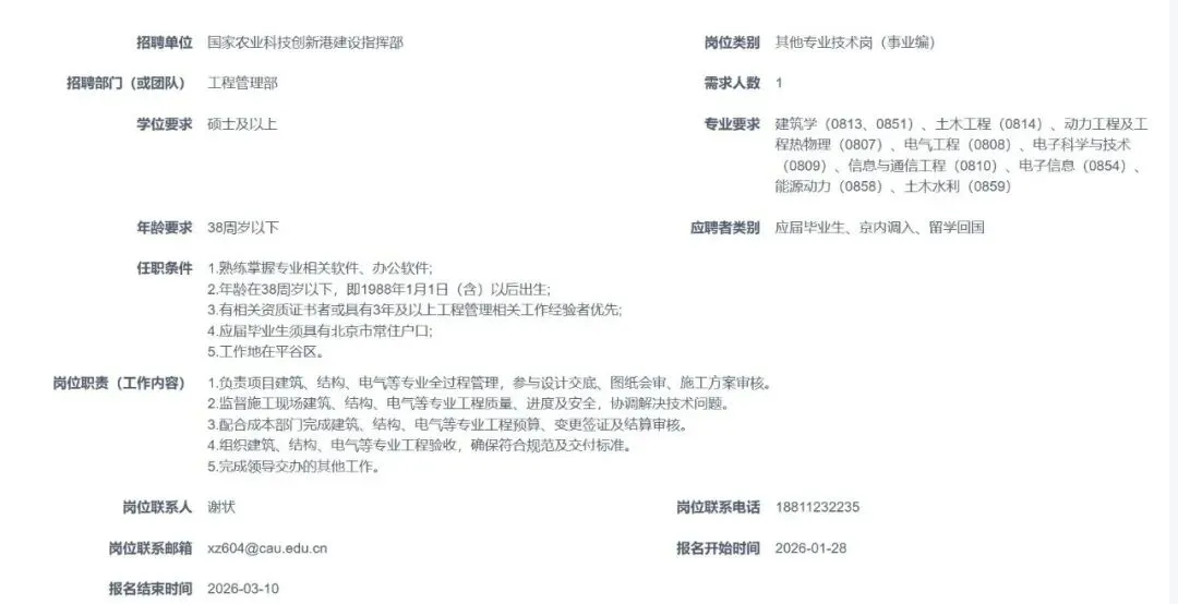 事业编丨中国农业大学丨专技岗1名丨截止3.10