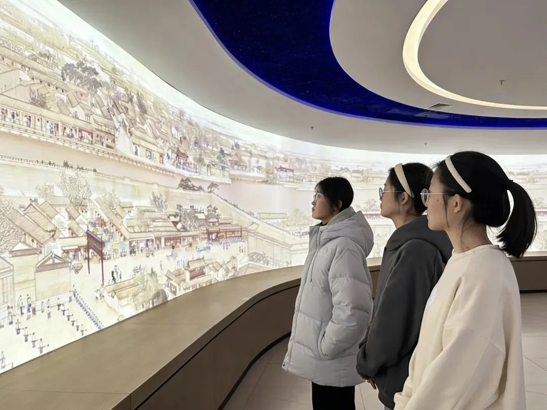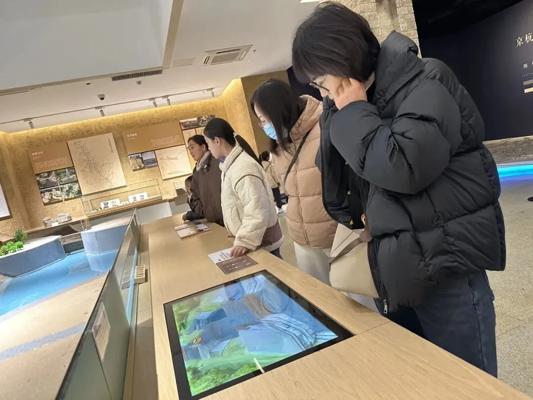 展厅内,大屏幕循环播放着京杭大运河聊城段的历史故事、漕运场景与市井生活画面,生动再现当年运河两岸舟楫往来、商贾云集的繁华景象。队员们驻足观看,仿佛穿越历史长河,置身于市井烟火之中,真切感受百姓生活随时代发展的点滴变迁,进一步认识到大运河在历史长河中的独特地位与深远影响。