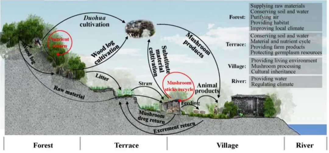 菇民基于森林与真菌互利共生的生态原理,形成了森林保护理念与林菇共育生态循环模式。这种模式不仅有效保护了生物多样性和生态环境,也契合当代可持续发展理念。同时,以香菇为核心的一系列农林产品保障了当地居民的食品与营养需求,多元产业的发展促进了山区经济增长和农民脱贫。更为重要的是,香菇栽培技术的传播推动了全球食用菌产业的发展。