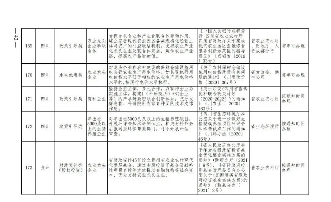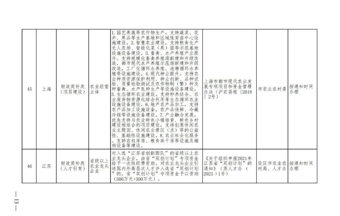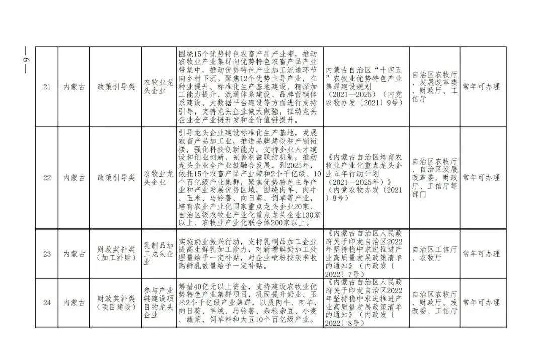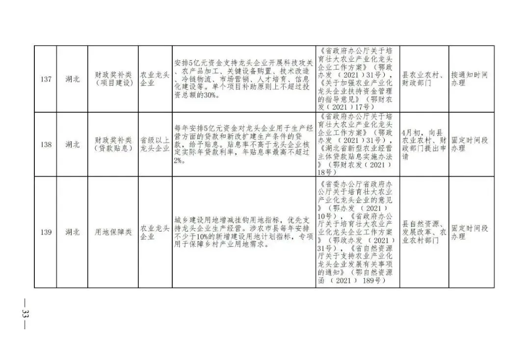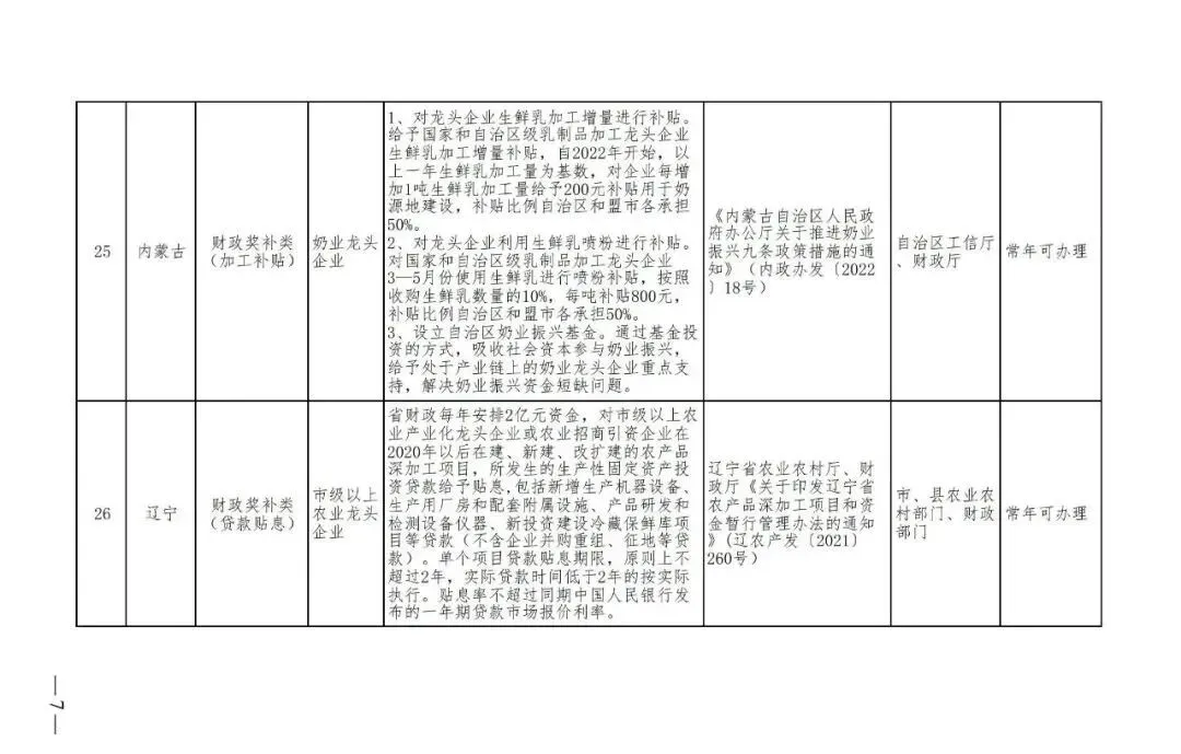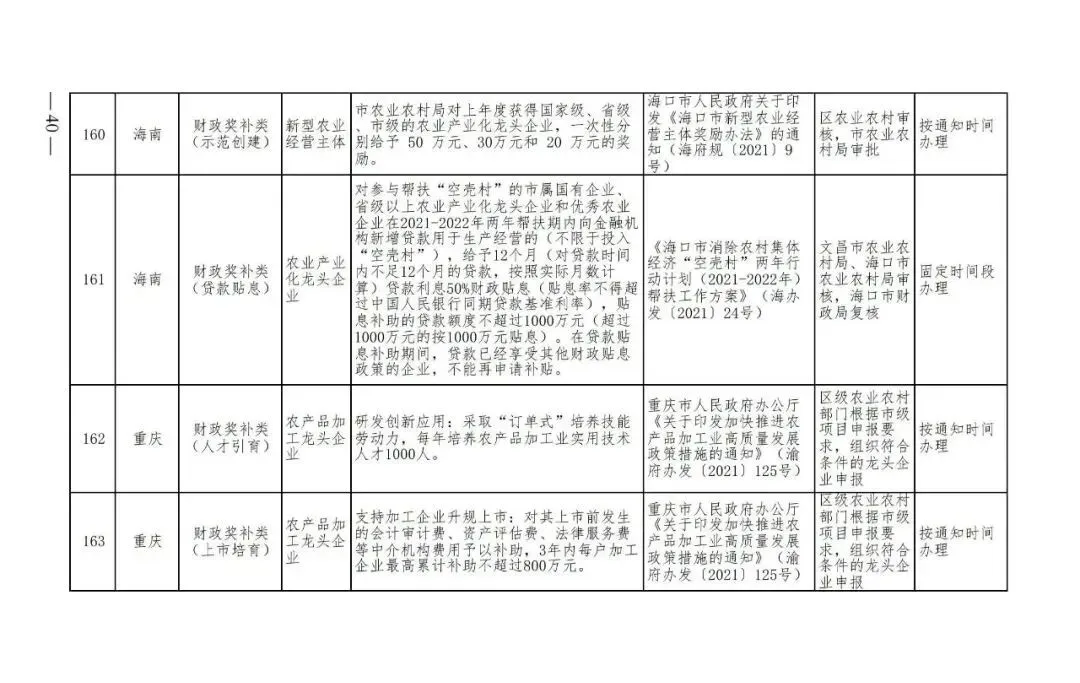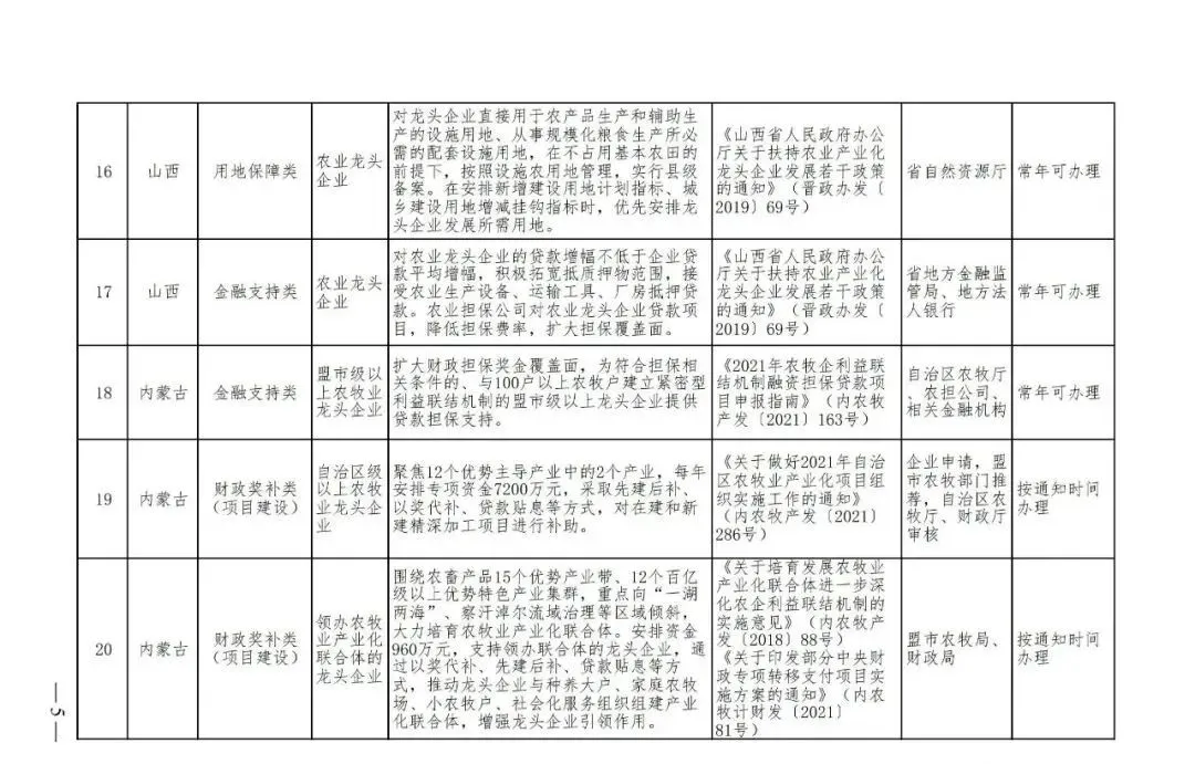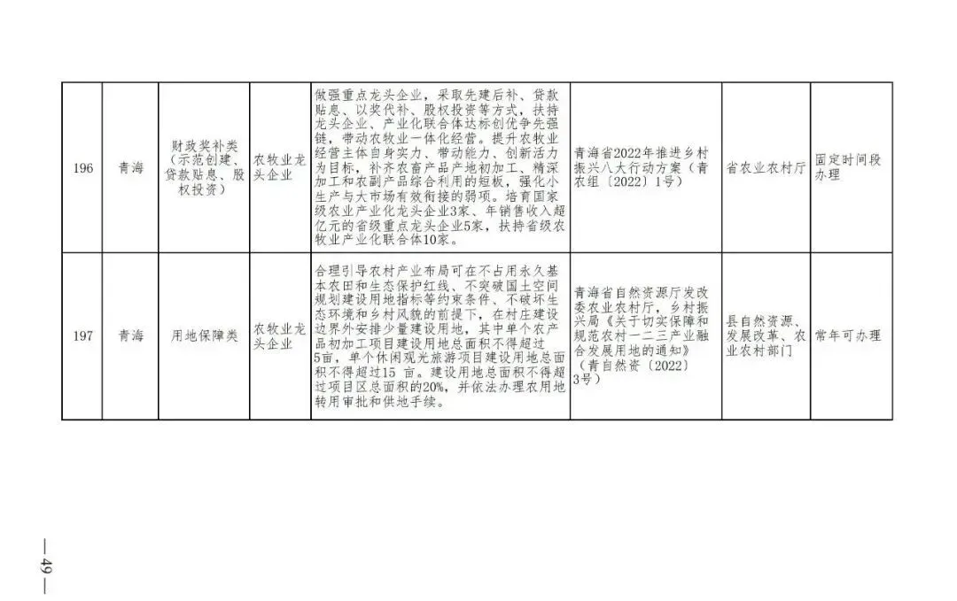 为加强对农业产业化龙头企业的精准服务,农业农村部乡村产业发展司收集了各省(区、市)对龙头企业的支持政策,于近期印发《农业产业化龙头企业支持政策清单》(简称《清单》),供各地互相参考学习。