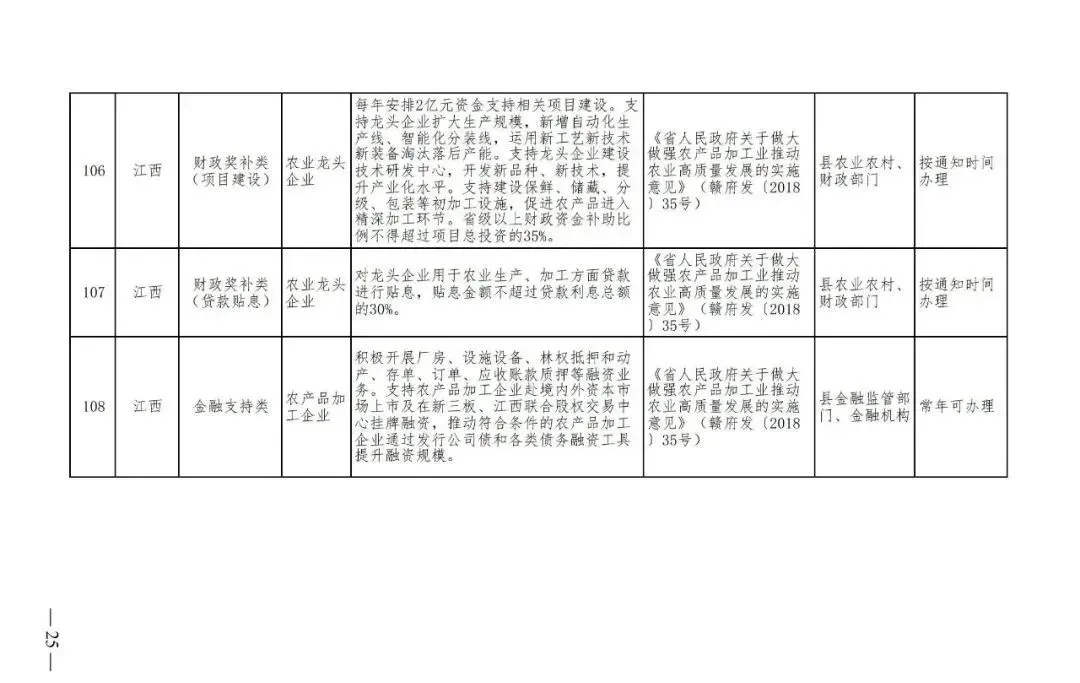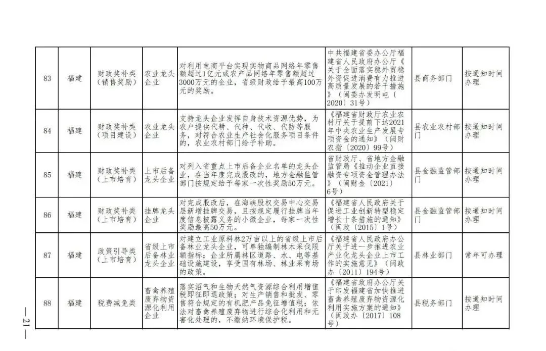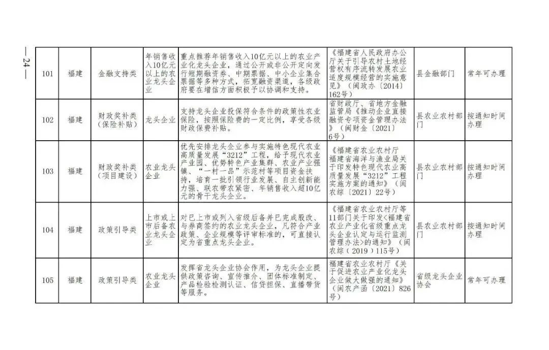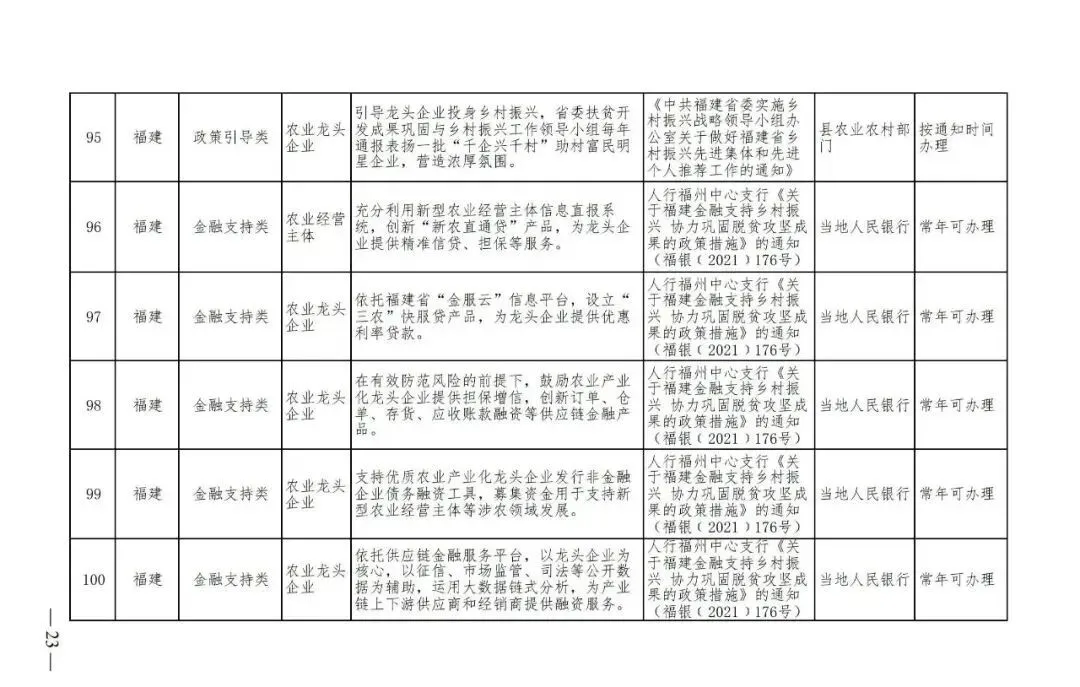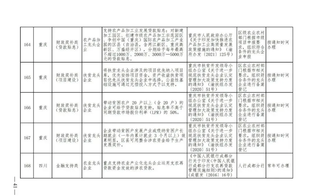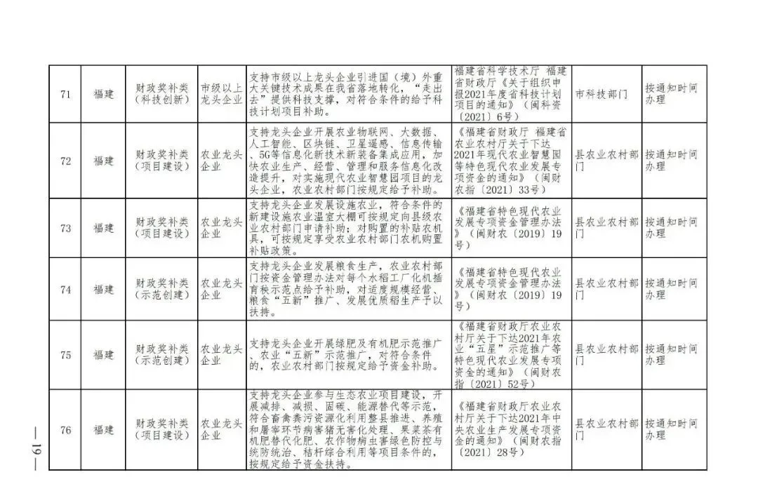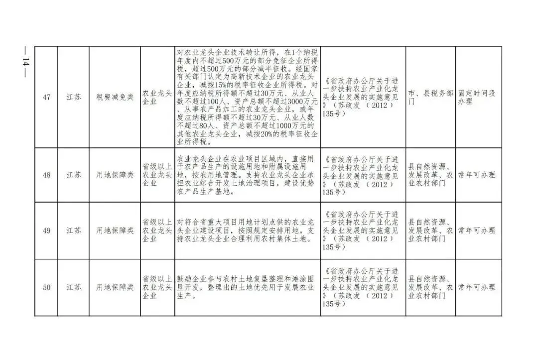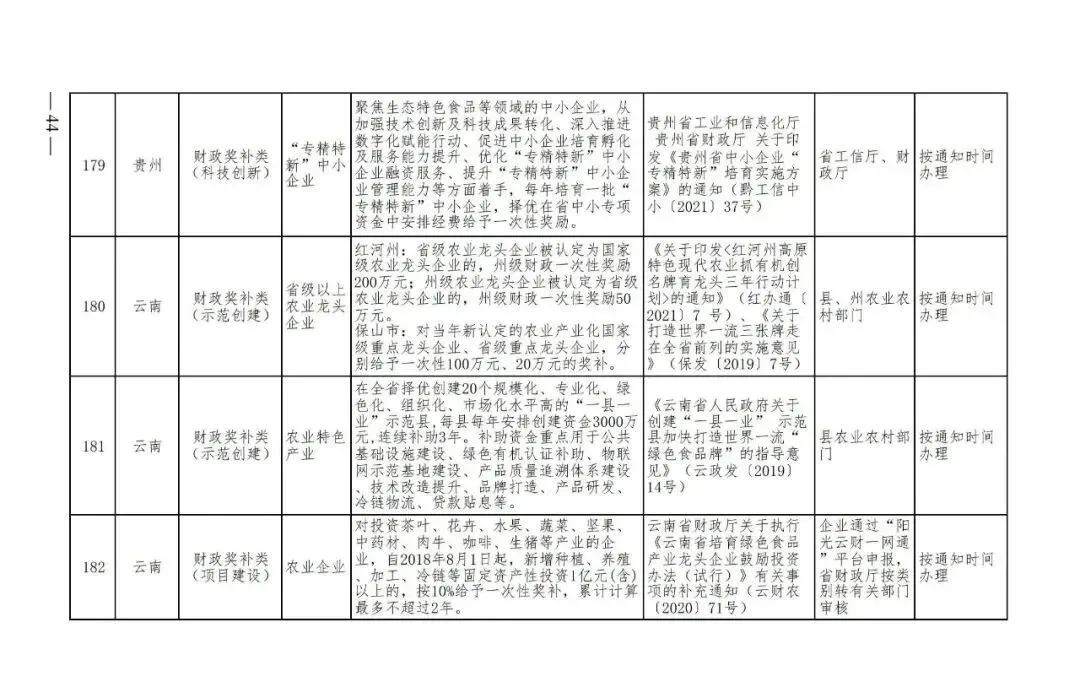 为加强对农业产业化龙头企业的精准服务,农业农村部乡村产业发展司收集了各省(区、市)对龙头企业的支持政策,于近期印发《农业产业化龙头企业支持政策清单》(简称《清单》),供各地互相参考学习。