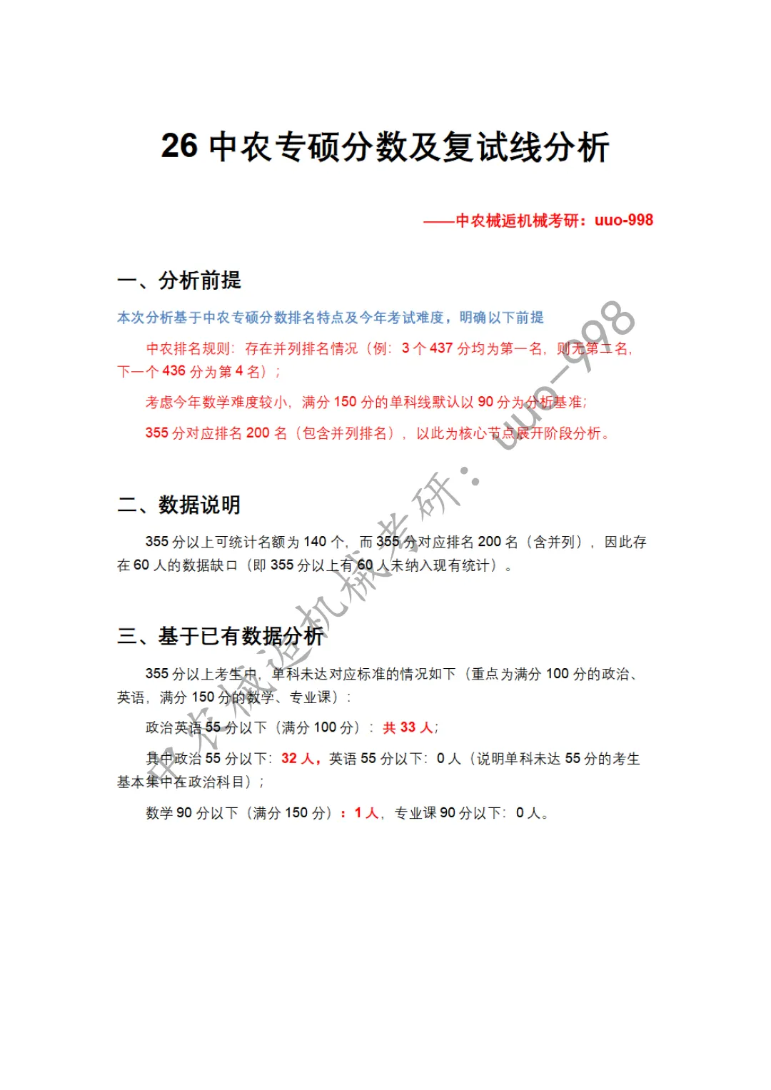 26中国农业大学机械考研分数线分析预测-专硕085500