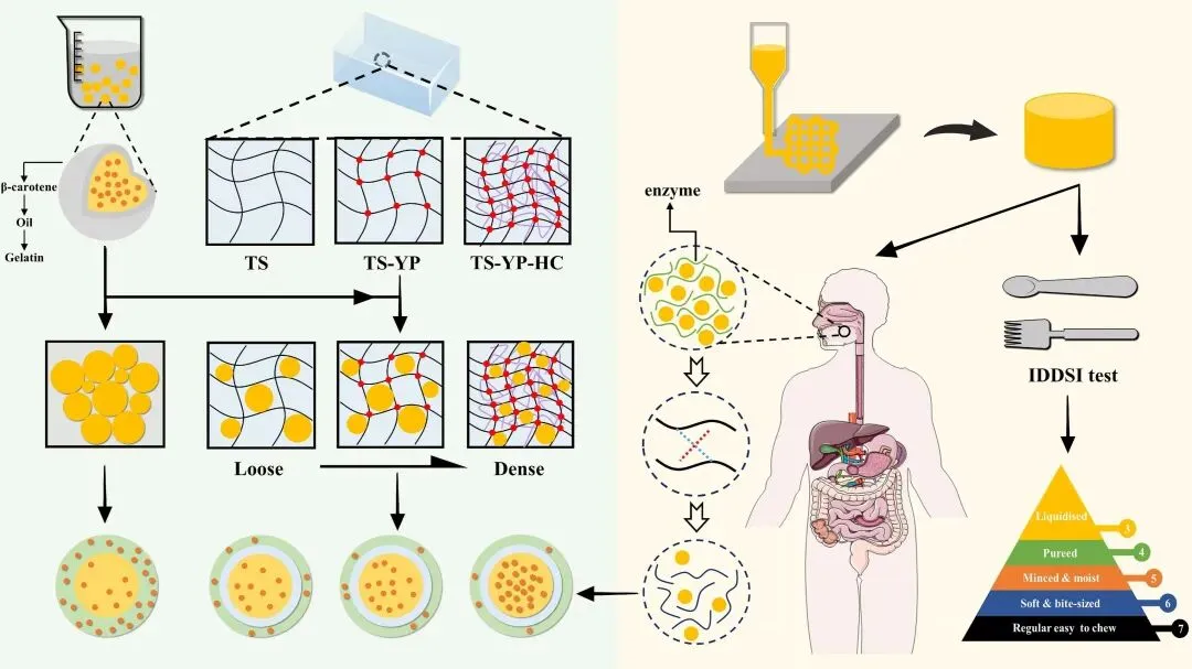 本研究为吞咽困难患者开发了一种3D打印营养果冻,能有效保护易分解的营养素,使食物既安全好吞,又营养丰富。
