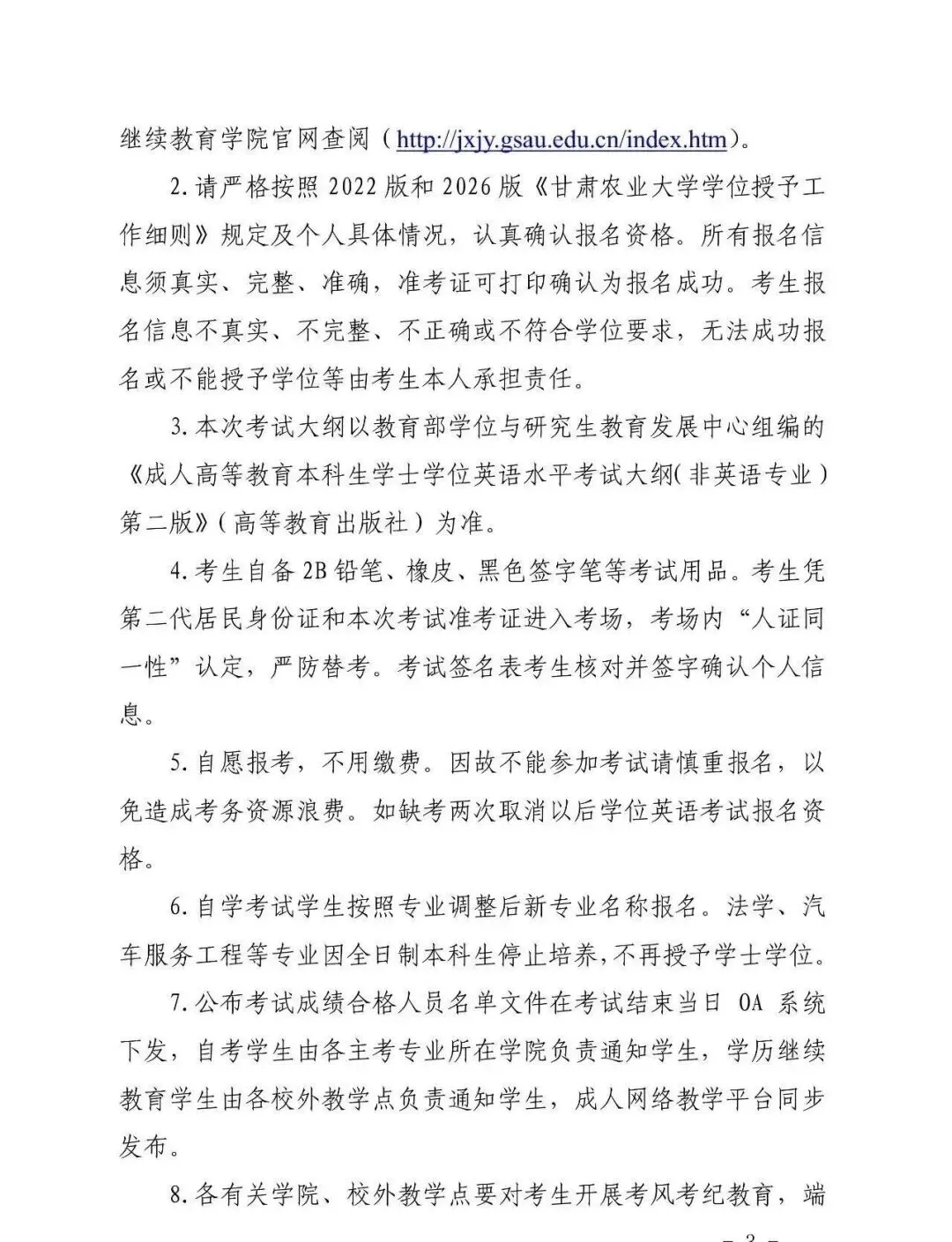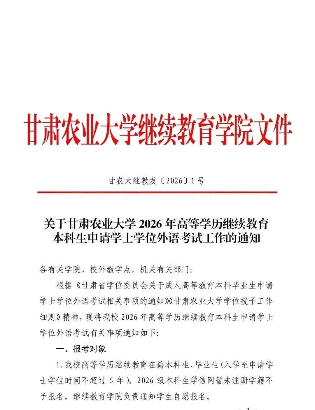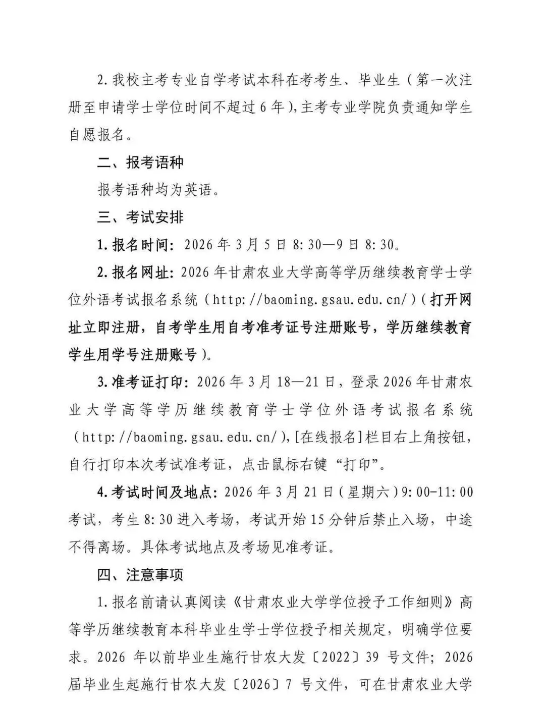甘肃农业大学2026年高等学历继续教育本科生学位外语考试报名通知甘肃农业大学学士学位证书申请条件及学位专业课考试科目