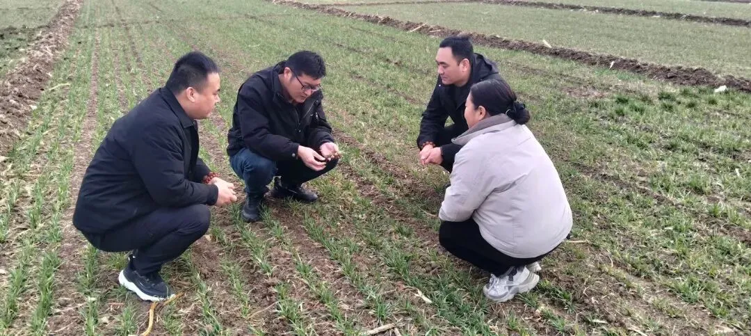 “雨水”节气已过,我县冬小麦陆续进入返青起身期,正是抓好春季田间管理、促进苗情转化升级的关键时期,特别是3月1-2日出现的10.2厘米降雪天气,有效改善了土壤墒情,有利于小麦返青生长。武强县农业农村局精心组织、周密部署,紧扣“早管促早发、因苗抓分类、防灾减损失、防病保丰收”主线,技术人员积极深入田间地头,查苗情、测墒情、讲技术、送服务,扎实做好小麦田间管理各项工作。3月3日,该局组织技术站、土肥站、种植业科等技术专家实地查看麦田积雪和小麦长势情况,为春季管理保驾护航。