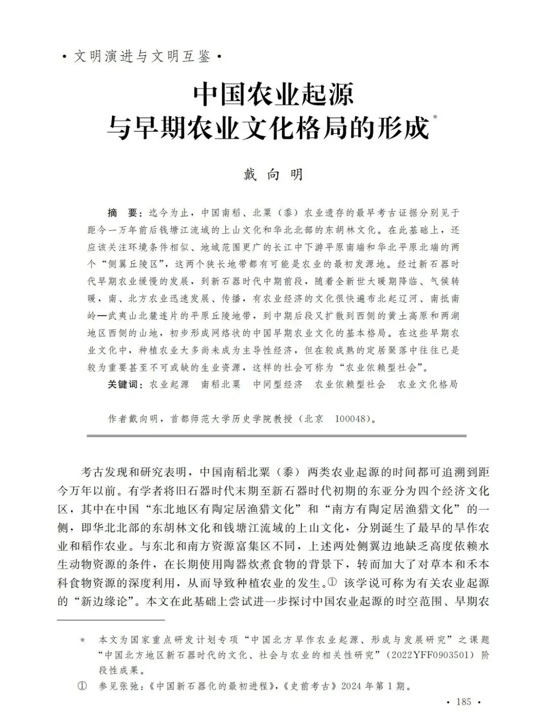研究新识丨戴向明教授:中国农业起源与早期农业文化格局的形成