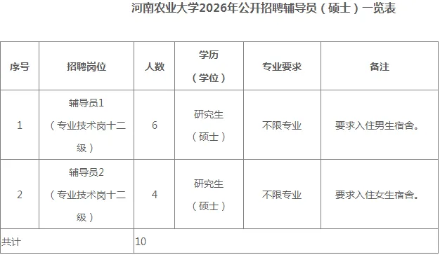 招聘|河南农业大学2026年公开招聘辅导员(硕士)公告