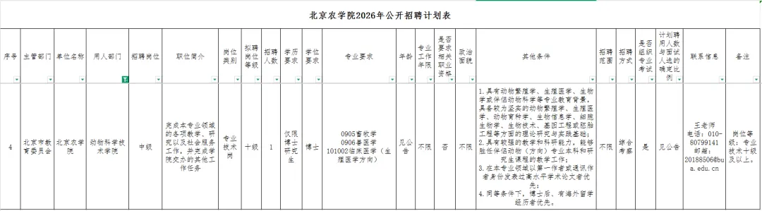 根据《事业单位人事管理条例》《河南省事业单位公开招聘工作规程》(豫人社〔2015〕55号)有关规定,我校拟面向社会公开招聘辅导员(硕士)10名。河南农业大学源自1902年创办的河南大学堂,1984年更名为河南农业大学,是国家林业和草原局与省政府共建高校、河南省特色骨干大学建设高校和河南省“双一流”创建工程高校,2023年成为中国现代农业联合研究生院依托高校。学校设有农、工、理、经、管、法、文、医、教、艺10大学科门类。有1个一级学科国家重点学科,2个河南省“双一流”创建学科,4个河南省特色骨干学科(群),1个河南省特需急需特色骨干学科(群),17个省部级重点学科,植物学与动物学、农业科学、工程学、环境与生态学、微生物学、生物学与生物化学、化学7个ESI全球前1%学科。有9个博士后科研流动站,10个一级学科博士学位授权点,2个博士专业学位授权点,19个一级学科硕士学位授权点,20个硕士专业学位授权类别。现有在职教职员工2700余人。中国工程院院士6人,各级各类人才262人。在站博士后810余人。在校生3.8万余人。学校成立以学校主要领导为组长,分管校领导为副组长,相关单位负责人为成员的公开招聘工作领导小组。领导小组下设办公室,办公室设在人事处,由人事处处长任办公室主任。人事处主要负责信息发布、资格审查、考试考核组织、手续办理等具体工作。(2)年龄不超过30周岁(1995年1月及以后出生);(3)毕业生须在2026年7月31日前取得学历学位证书。7.其他要求见附件2《河南农业大学2026年公开招聘辅导员(硕士)一览表》。1.现役军人、试用期内的机关事业单位工作人员、未满规定最低服务年限的机关事业单位工作人员以及在读的非2026年应届毕业生;2.受过刑事处罚的人员,以及刑事处罚期限未满或者涉嫌违法犯罪正在接受调查的人员;3.被开除中国共产党党籍的人员、被开除公职的人员,以及尚未解除党纪、政务处分或正在接受纪律审查、监察调查的人员;4.曾在公务员招录、事业单位公开招聘考试中被认定有舞弊等严重违反招聘纪律行为还在禁考期的;6.应聘人员不得报考聘用后即构成回避关系的招聘岗位。回避关系包括《事业单位人事管理回避规定》第六条和《河南省事业单位公开招聘工作规程》第五十五条所列情形;详见附件《河南农业大学2026年公开招聘辅导员(硕士)一览表》。(一)招聘信息在河南省人力资源和社会保障厅(网址https://hrss.henan.gov.cn/)、河南农业大学(网址https://www.henau.edu.cn)、河南农业大学人事处(网址https://rs.henau.edu.cn/)同步发布。(二)招聘信息自公告发布之日起至2026年3月15日有效,河南农业大学将根据岗位报名情况,适时组织实施报名、考试、体检、考察等程序。报名采用网上报名方式,请登录河南省属大中专学校教师公开招聘网上报名系统(网址http://zhaopin.jyt.henan.gov.cn/default.aspx?sid=6,进入河南农业大学教师公开招聘网上报名系统,通过“硕士及硕士以下学历报名入口”进行报名,报名时间为2026年3月1日8时至2026年3月15日18时。每人限报我校1个岗位,请应聘者慎重选报,报名成功后务必牢记登陆密码,应聘者可凭此密码登陆招聘系统查询个人相关信息。重要提示:招聘工作中具体安排,请应聘人员及时关注河南农业大学人事处网站招聘信息栏(网址http://rs.henau.edu.cn/),按学校要求参加资格审查、考试等各环节招聘工作。如因本人不及时查阅相关招聘信息造成后果,责任自负。1.资格审查由学校公开招聘工作领导小组办公室负责组织实施。资格审查工作贯穿招聘全过程,任何环节发现应聘人员不符合招聘条件或提供的材料弄虚作假,一经查实,随时取消其应聘或聘用资格。2.应聘人员应及时登录网上招聘系统查询资格审查结果。应聘人员通过报考资格审查人数与招聘人数的比例不低于3:1,达不到规定比例的,相应核减该岗位招聘人数,直至取消该岗位招聘。3.通过网上资格审查者须本人按照规定时间到学校指定地点进行现场资格复审,具体时间、地点另行通知,逾期不到者视为自动放弃。(3)各学习阶段学信网“教育部学历证书电子注册备案表”、“中国高等教育学位在线验证报告”复印件,国(境)外毕业生须提供教育部留学服务中心国(境)外学历学位认证书;(4)根据相应招聘条件,提供中共党员(含预备)证明材料;以上材料复印件按照1-5的顺序排列、装订,审核原件后复印件学校留存。考试包括笔试和面试,在省人社厅指导下,笔试、面试工作由学校组织实施。学校将在人事处网站公布考试的相关信息。1.笔试。笔试以闭卷方式进行,满分100分。笔试内容为应聘岗位所需的公共知识和专业基础知识,主要测评应聘者适应岗位要求的知识水平和业务素质(不指定参考书)。笔试成绩和排名及时在人事处网站公布(一般在一周内公布)。2.面试。面试满分100分。面试人选根据笔试成绩,按各岗位拟招聘人数3:1的比例从高分到低分确定,比例内末位笔试成绩并列的同时进入面试。面试因人员缺考不形成竞争的相应减少该岗位招聘人数,直至取消该岗位招聘。若形成竞争的,面试继续进行,成绩有效,未到场人员成绩视为零分。面试环节全程录音录像。面试内容为招聘岗位应具备的基础理论、基本知识和基本技能,主要考察应聘人员的思想政治素质、专业能力、语言表达能力、分析判断能力等。面试结束后,现场公布面试